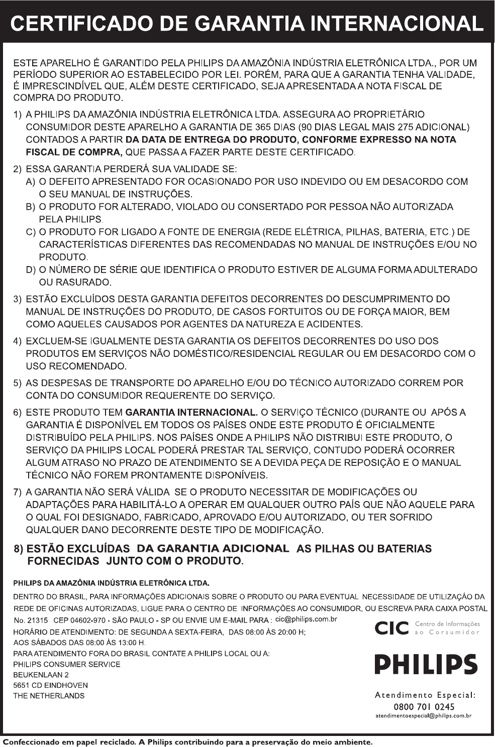 • AS PILHAS NÃO ESTÃO INCLUÍDAS NA GARANTIA ADICIO-
