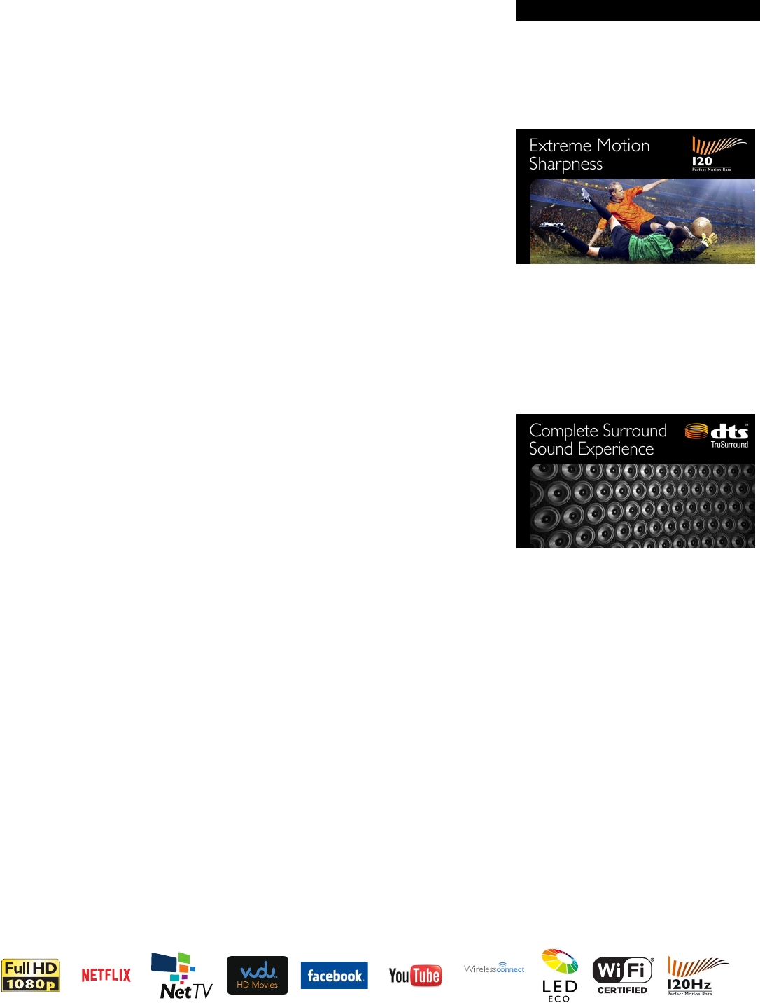 Wireless connectivity and 120 PMR performance in this LED LCD TV. Entertainment with
