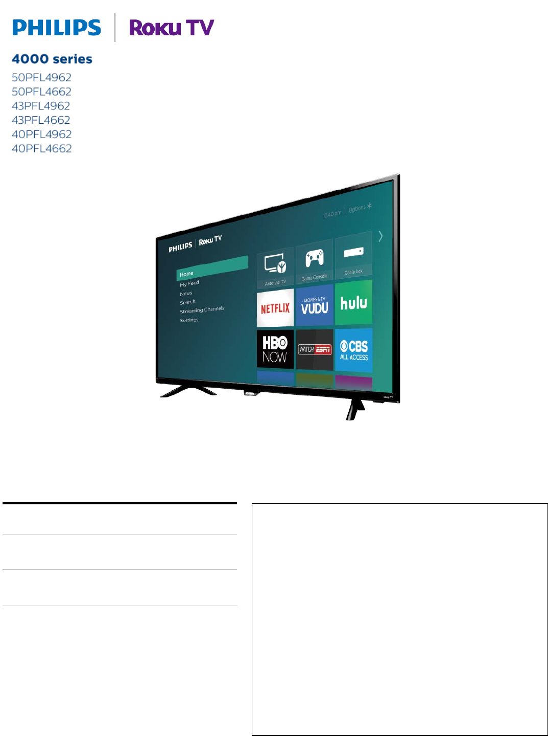 User Manual: Philips 40PFL4662/F7 User manual 4000 series LED-LCD TV 40PFL4662/F7 | Roku TV40PFL4662/F7
