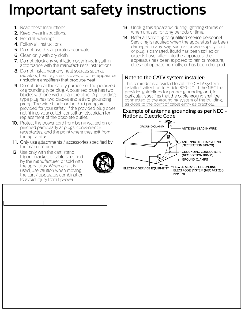 série afférent à votre Téléviseur, ainsi qu’une copie de la preuve originale de l’achat de votre Téléviseur. Si