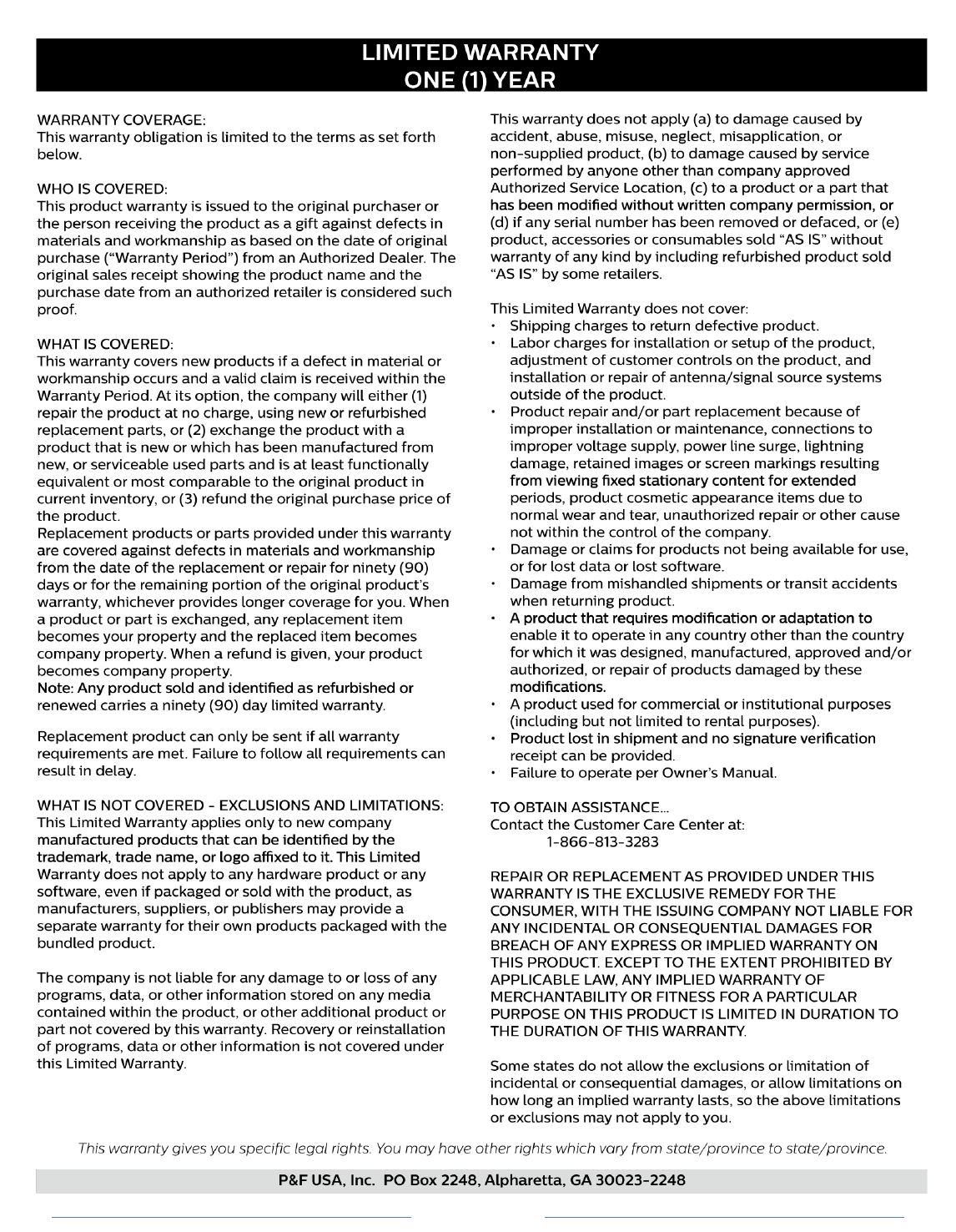 to “Open Source Team, P&F USA, Inc., PO Box 2248, Alpharetta, GA 30023-2248. P&F USA, Inc. disclaims any