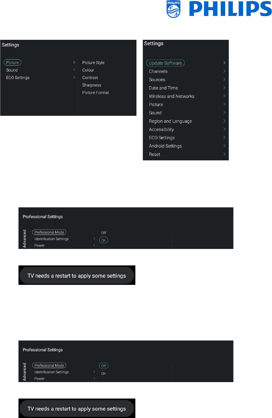 2.2 Professional Settings menu ................................................................................................. - 9 -