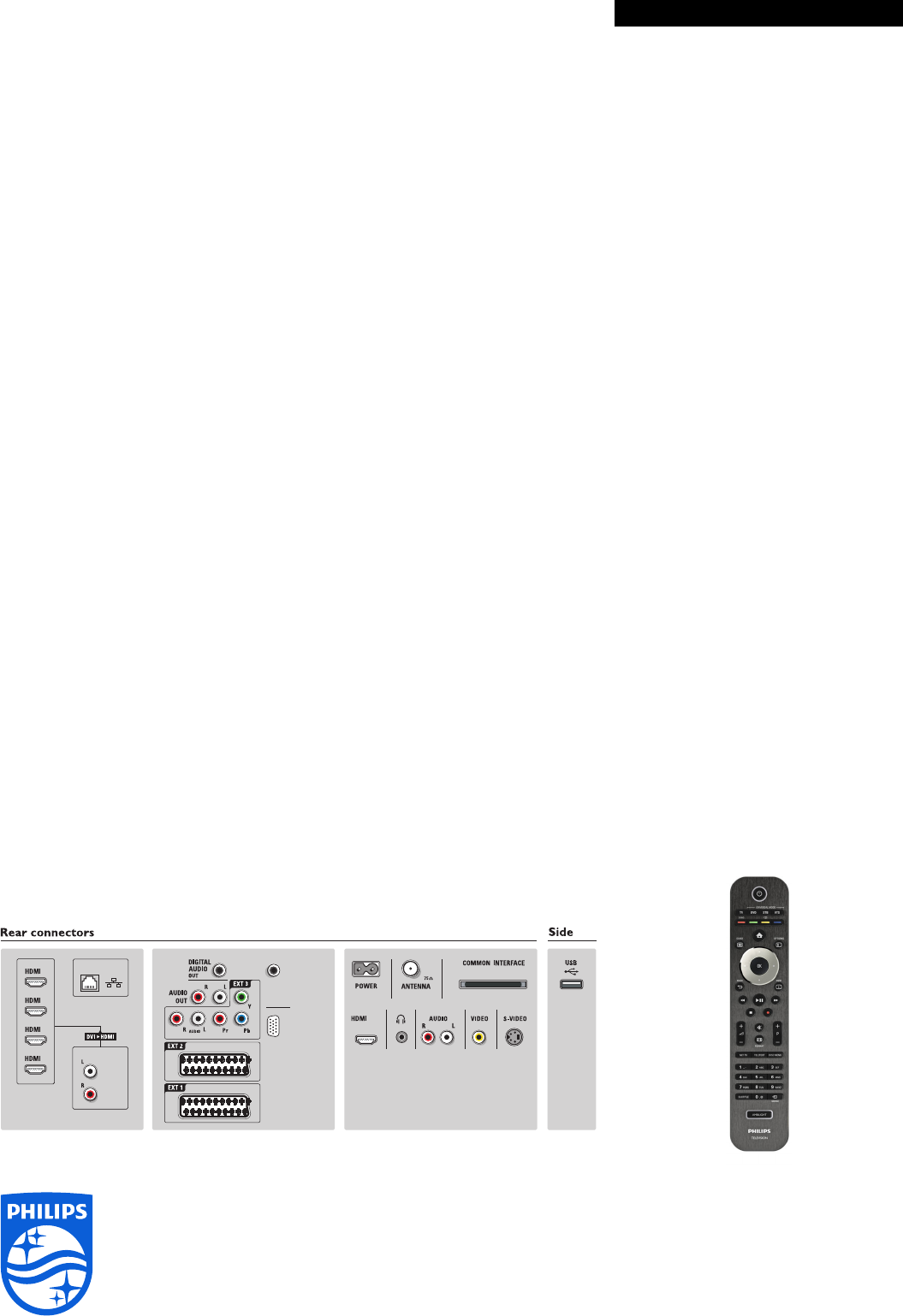 • Philips Net TV with Wi-Fi for online services on your TV