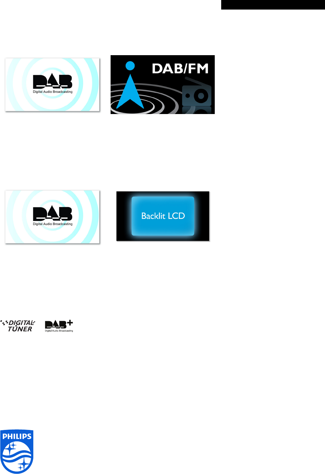 Digital DAB+/FM-tuning 20 forudindstillinger med ét tryk, Hovedtelefonstik, Batteri- eller vekselstrømsdre-