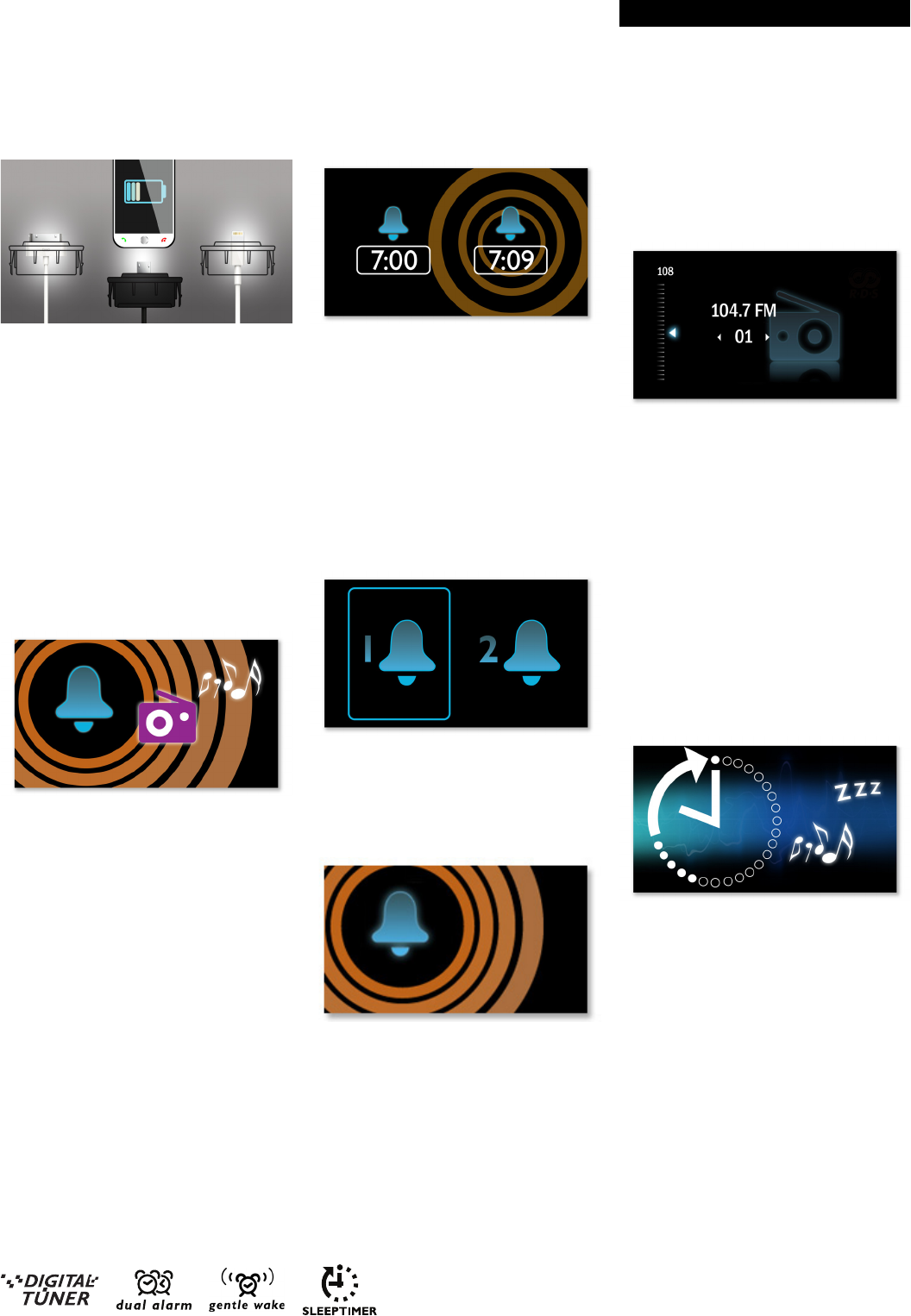 •Zobuďte sa na Vaše obľúbené rádio alebo bzučiak