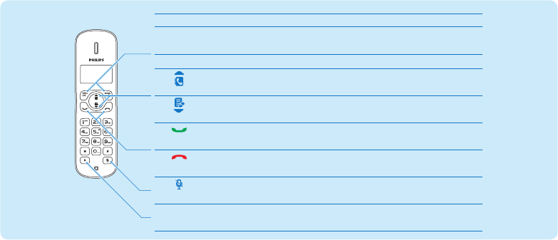End calls Turn handset on/off