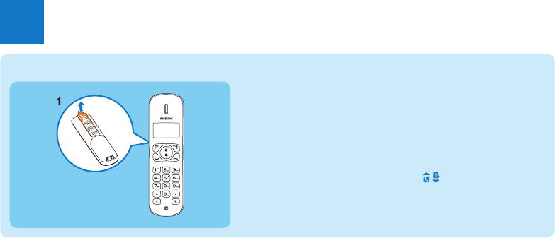 1 The batteries are pre-installed in the handset. Pull the battery tape off