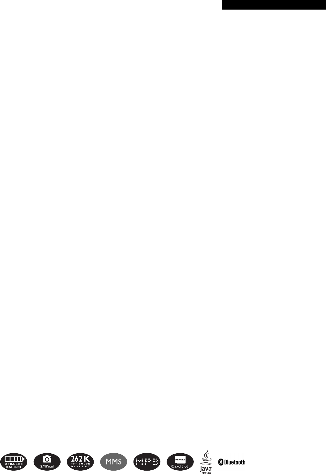 • Ringers: MP3 ringer, Polyphonic (64 tones), Voice