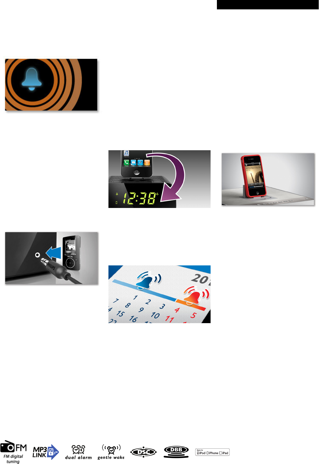 • Despiértate con música del iPod/iPhone/iPad o con la radio