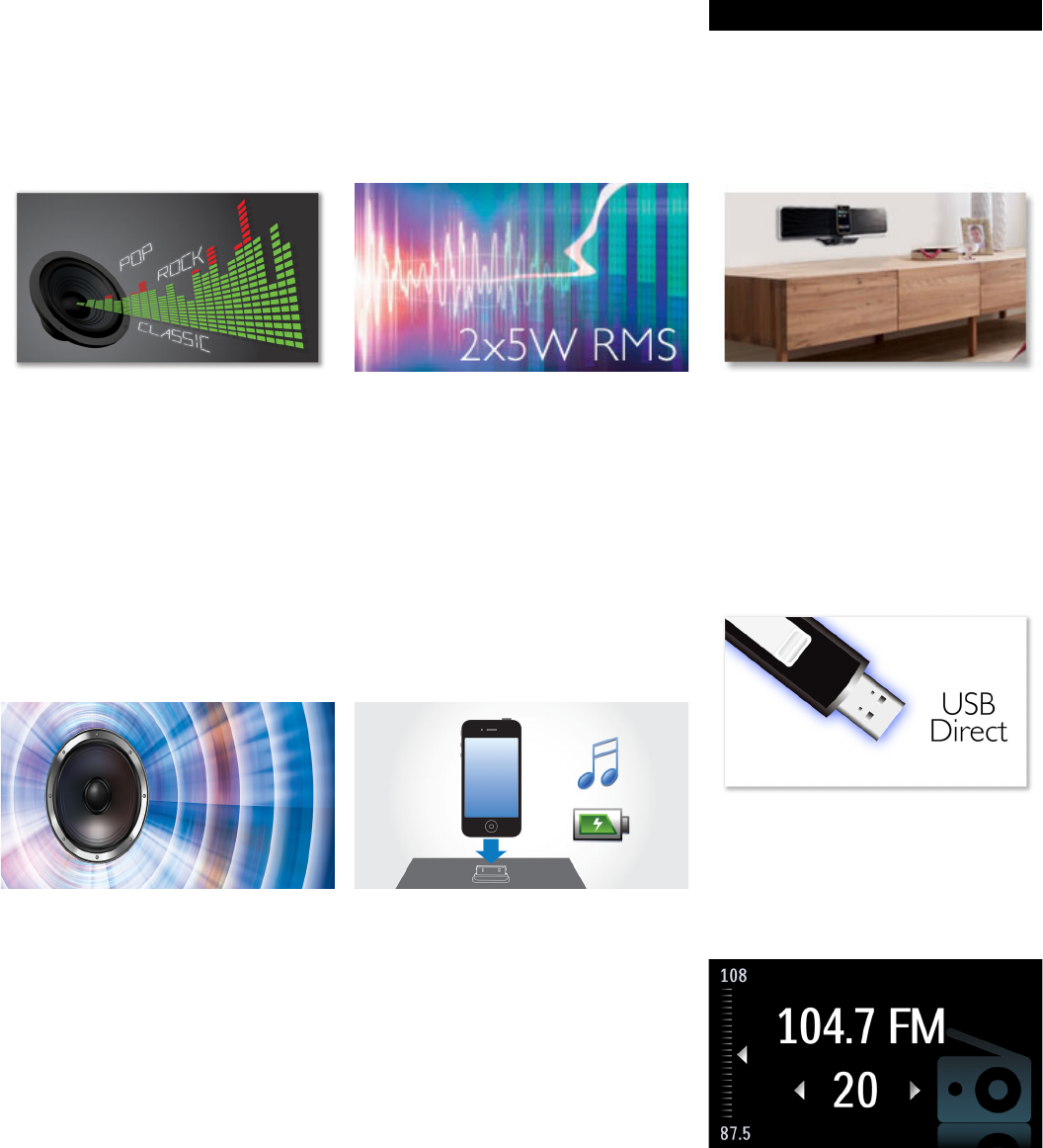 micro music system. The flat, compact design is also wall-mountable to complement any