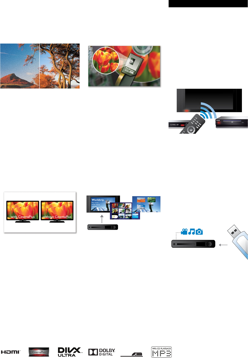 HDMI 1080p USB 2.0, DivX Ultra, CinemaPlus