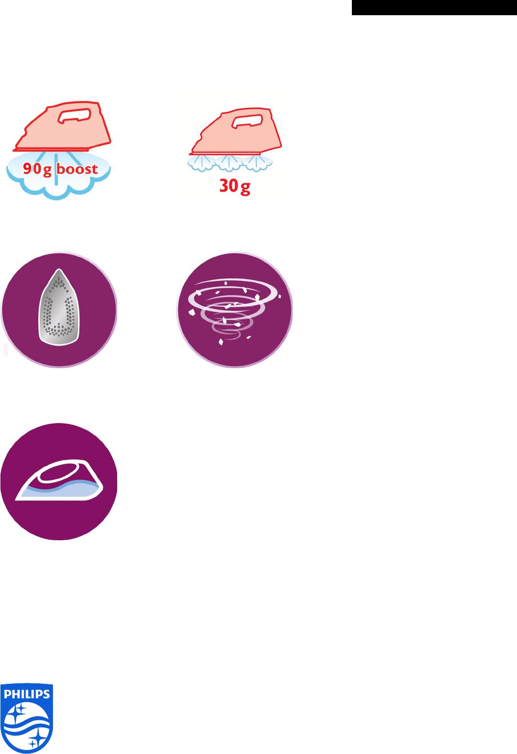 g steam boost, 2000 W for constant high steam and Self clean system, this practical Philips