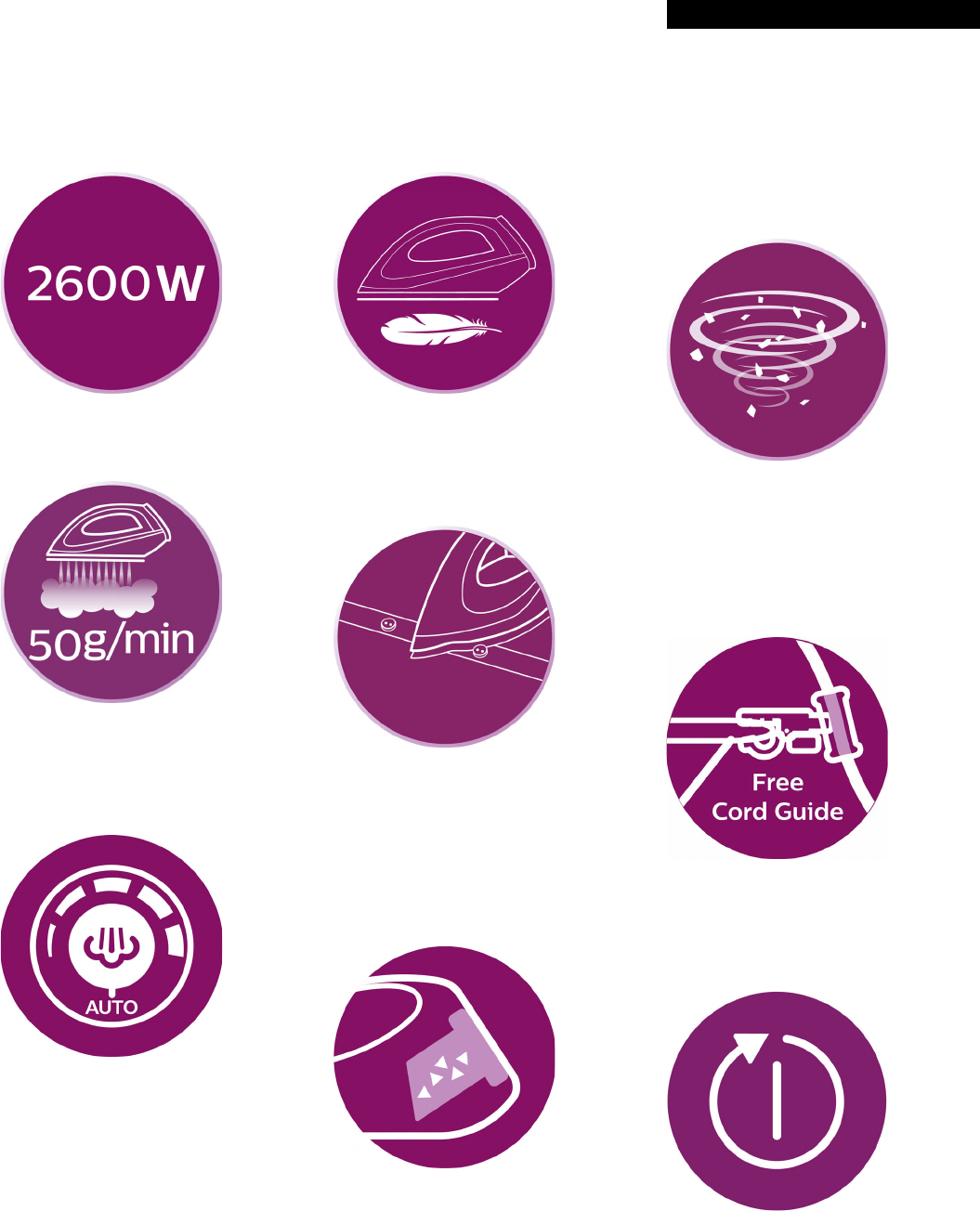 • 2600 W – greitai įkaista ir kokybiškai lygina