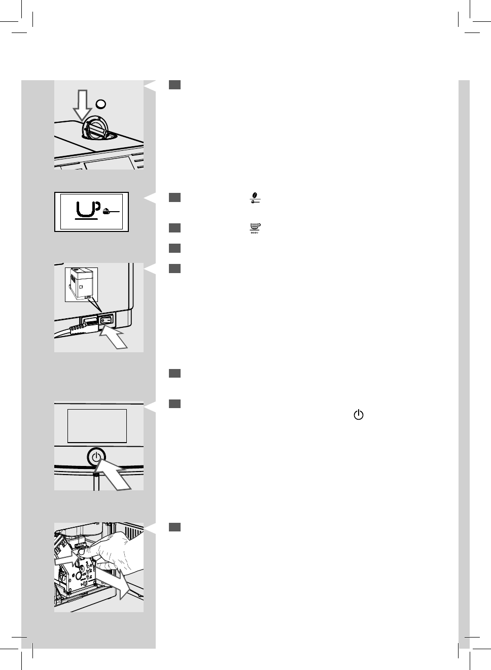 Pre zapnutie kávovaru stlačte tlačidlo “ ” (za podmienky, že je hlavný vy-