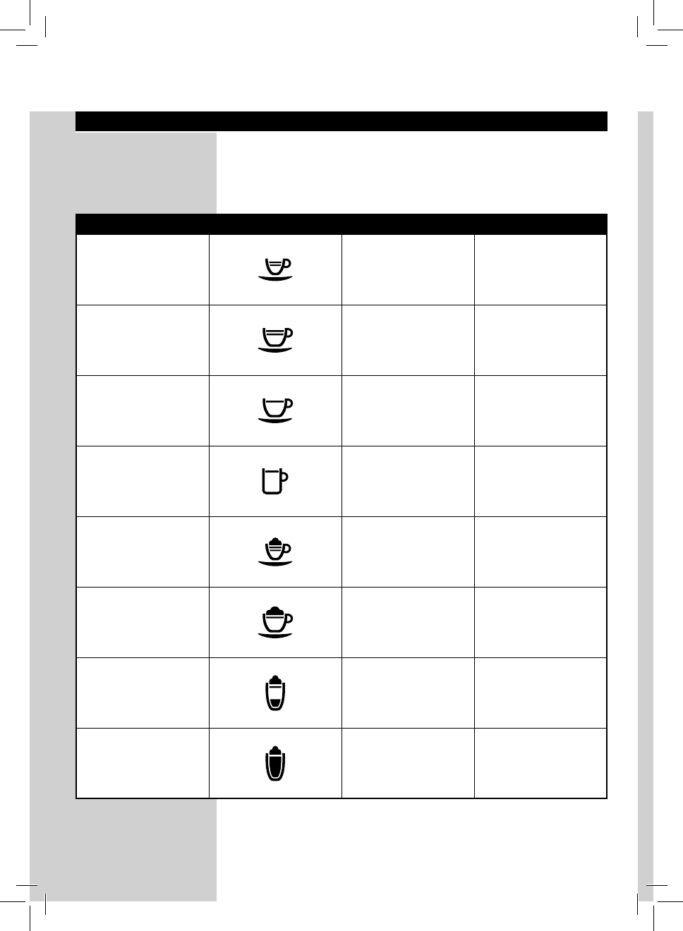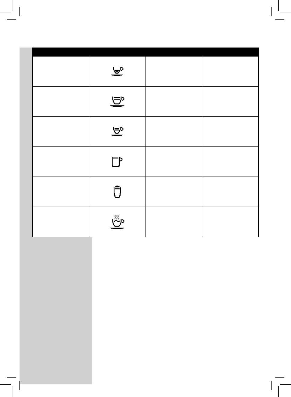 Name Display Icon Approx. Co ee Length Approx. Milk Length