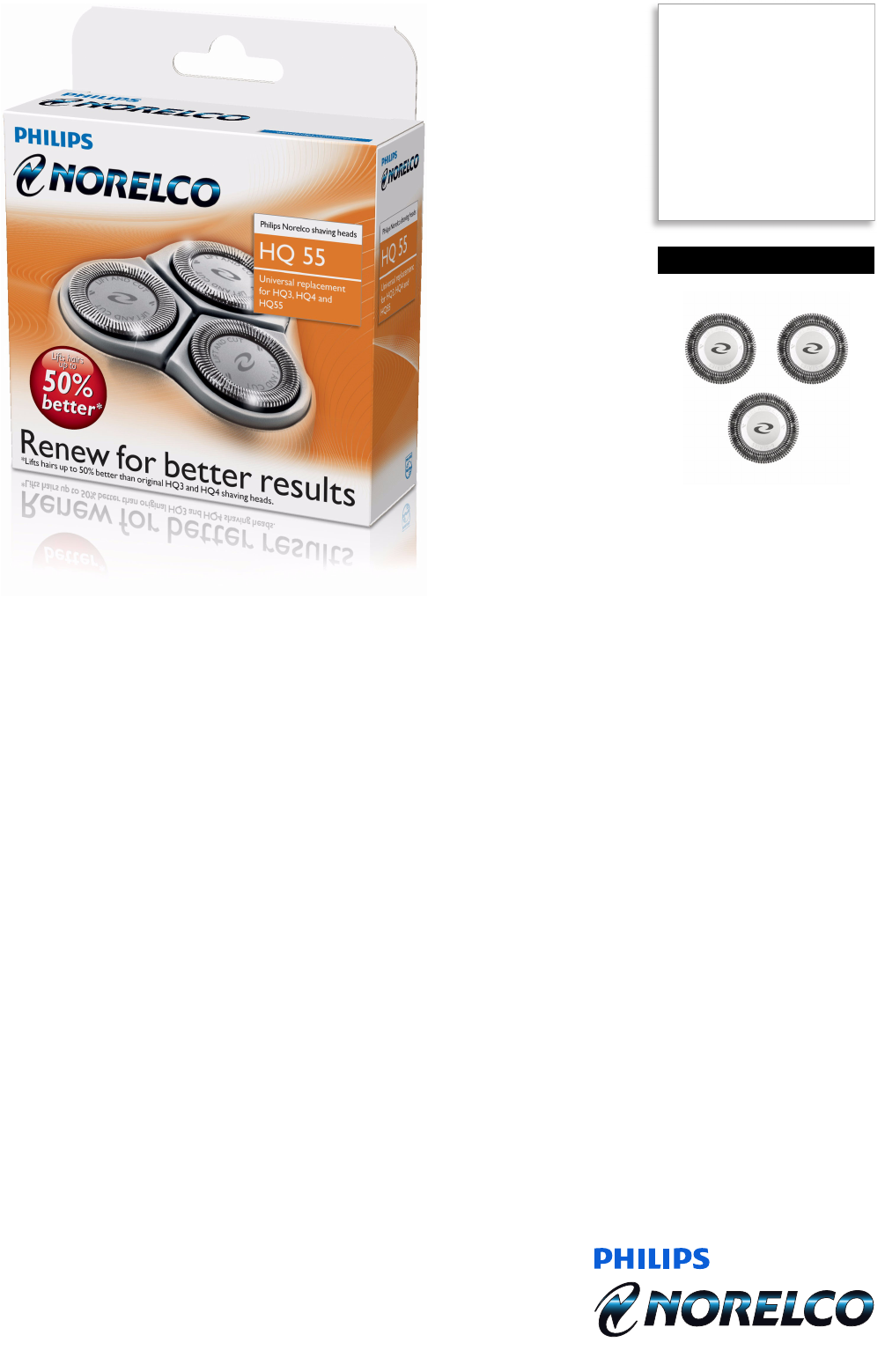User Manual: Philips HQ55 Leaflet Shaving heads HQ55/41 | NorelcoHQ55
