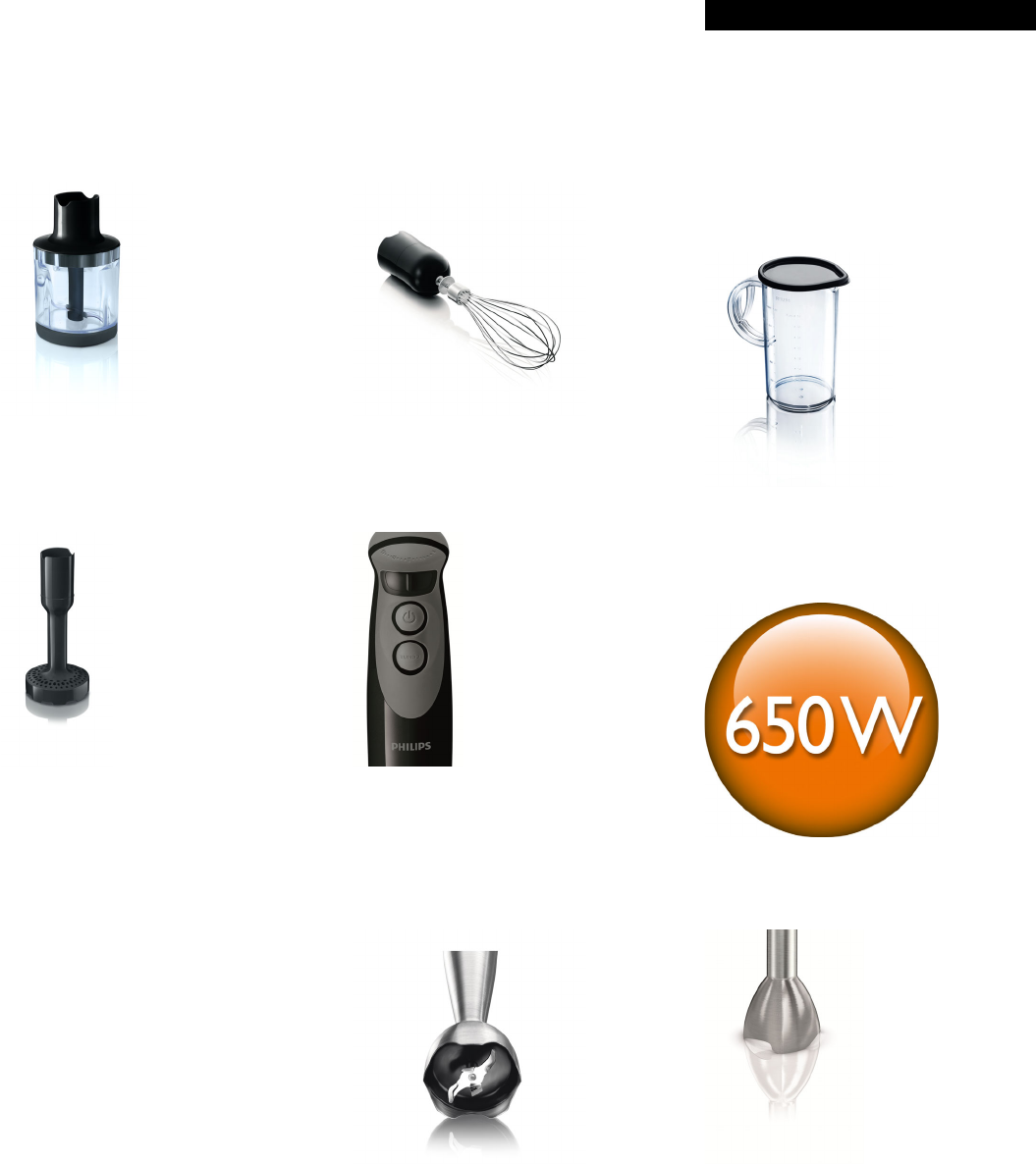 The Philips hand blender combines 650 Watt power with a double-action blade and