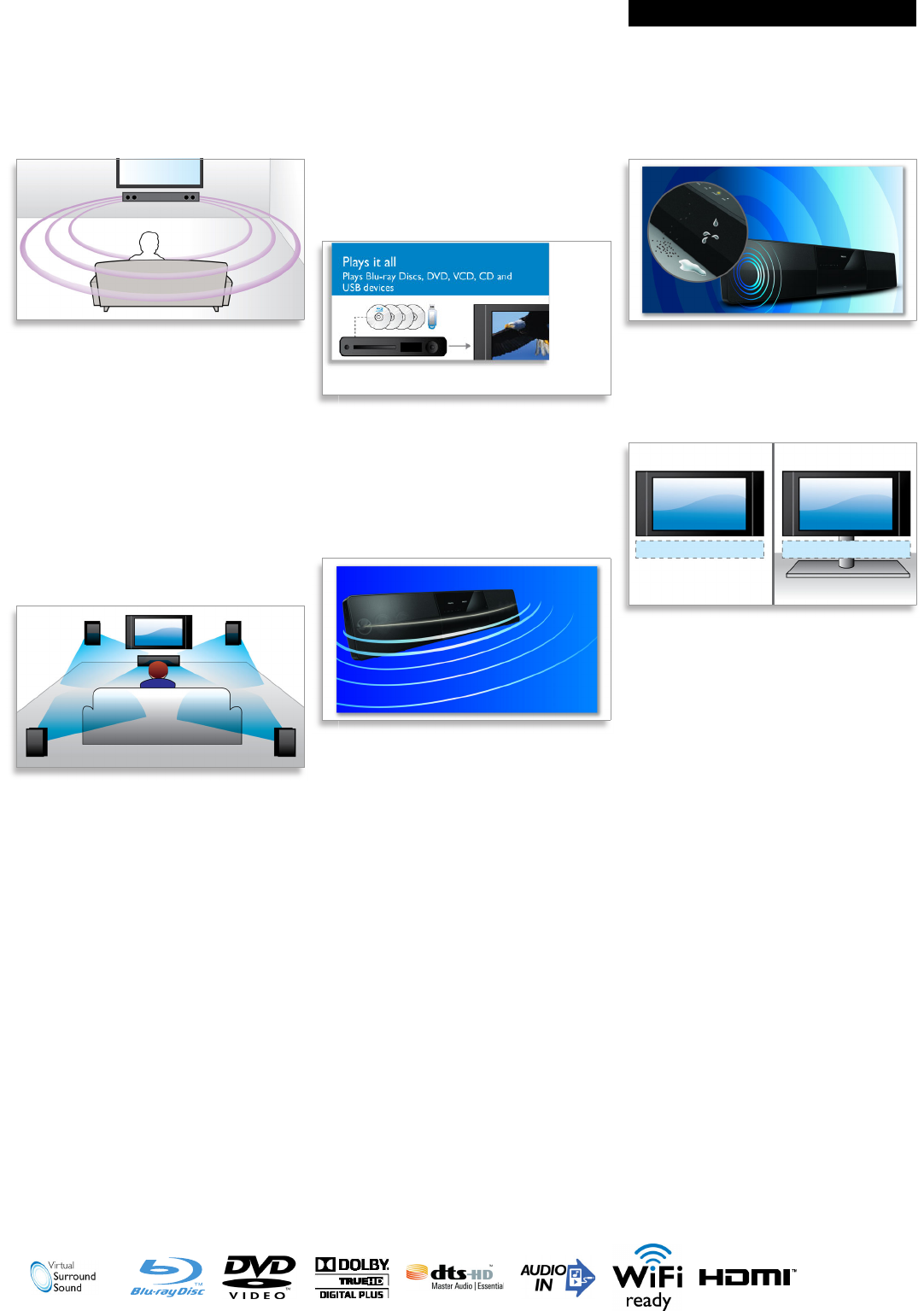 özelliğine sahip Philips SoundBar, tek bir ünitede yüksek çözünürlüklü Blu-ray disk oynatımı