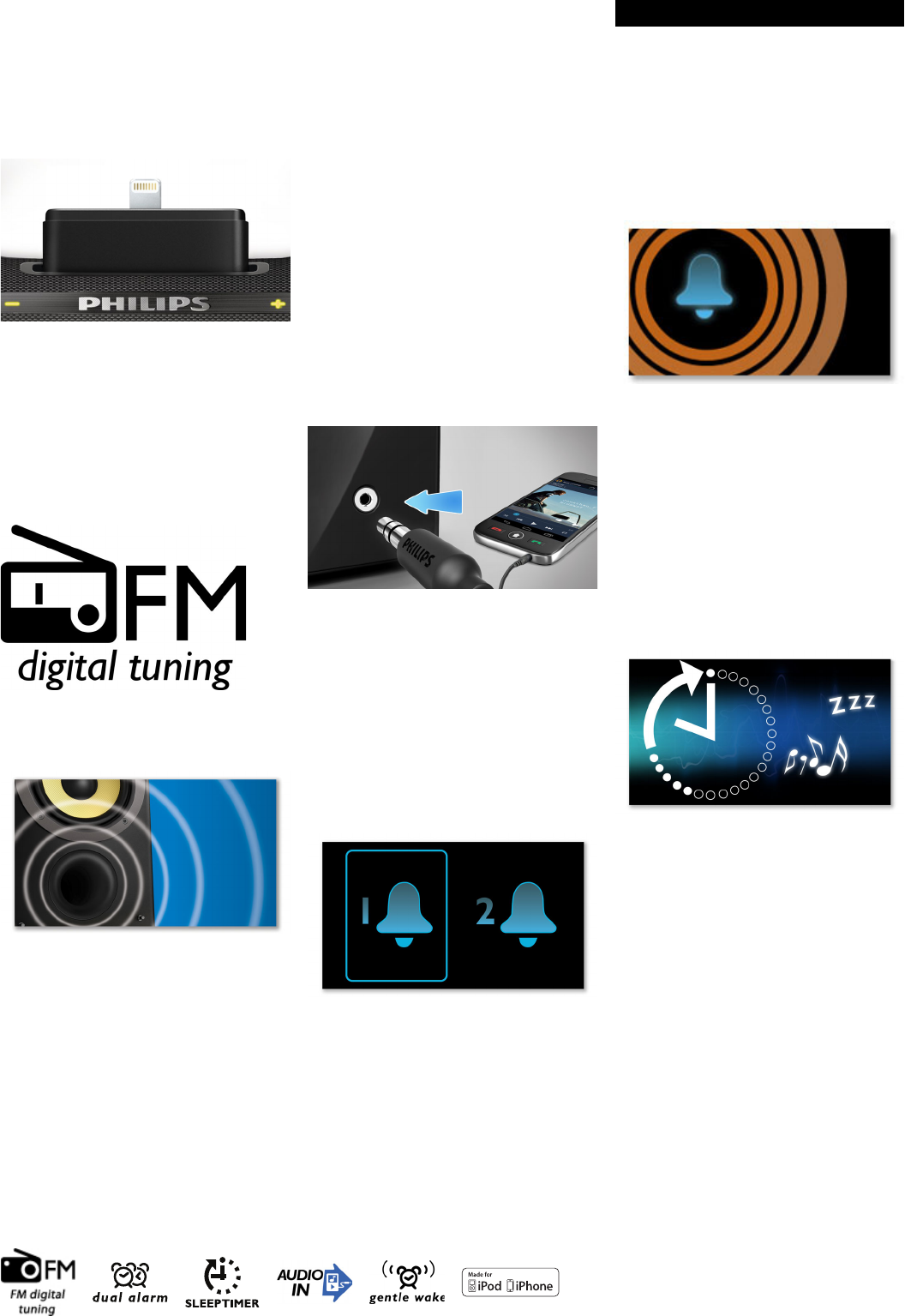 with Lightning connector for iPod/iPhone, FM, dual alarm, 4W