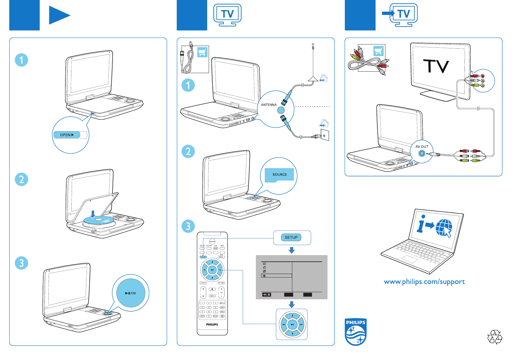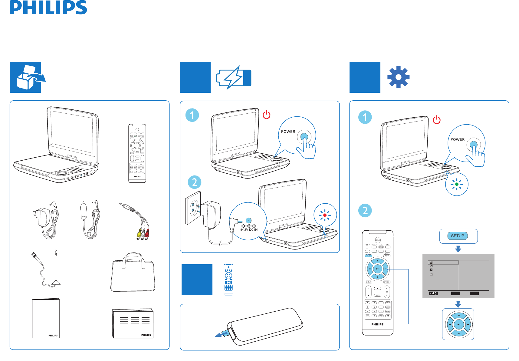 PD9025/12 Kiirjuhend pd9025_12_qsg_aen Kaasaskantav DVD-mängija ja digiteler PD9025/12 | PhilipsPD9025/12