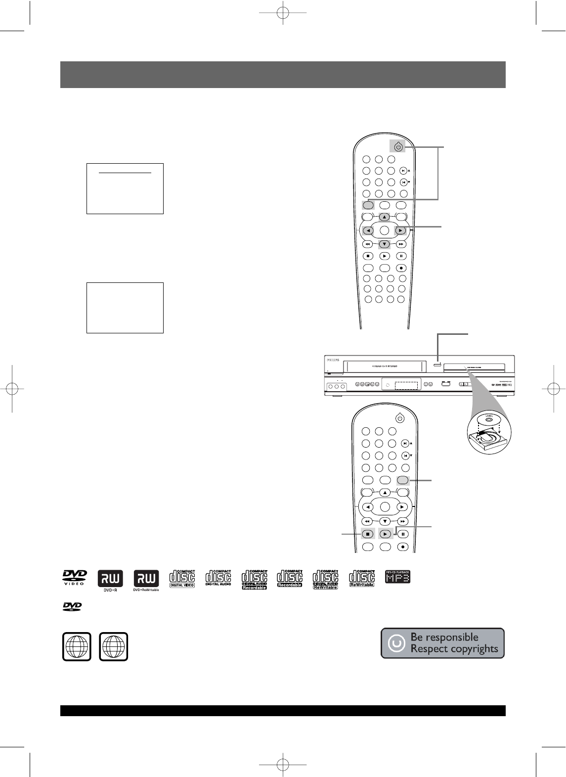 8Press STANDBY-ONyon the DVD/VCR or its remote control to turn on the DVD/VCR. The first time