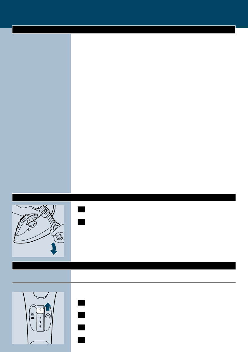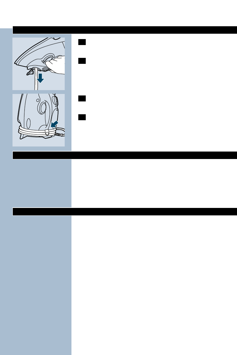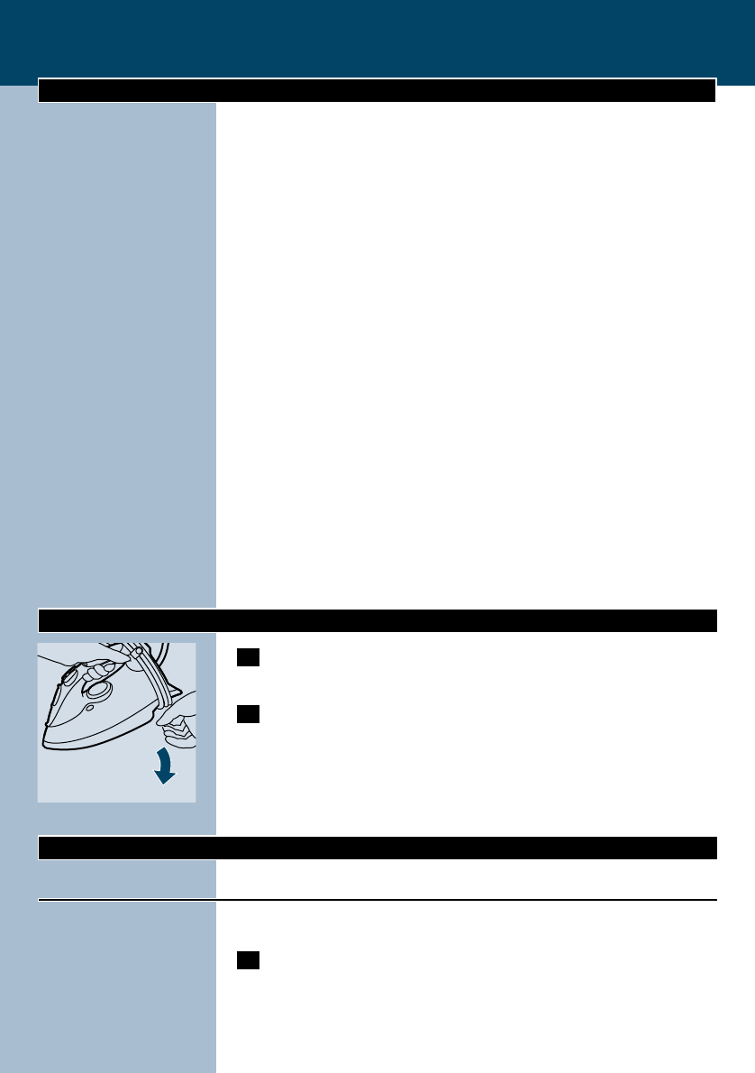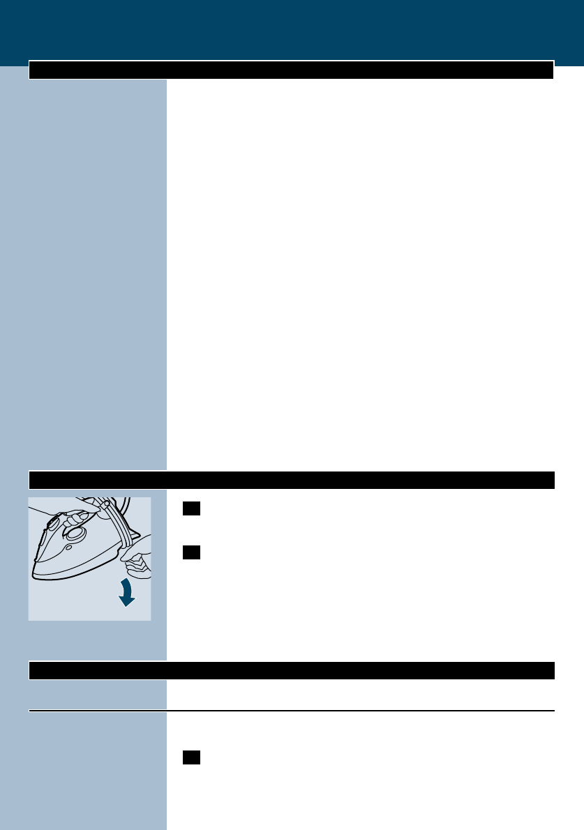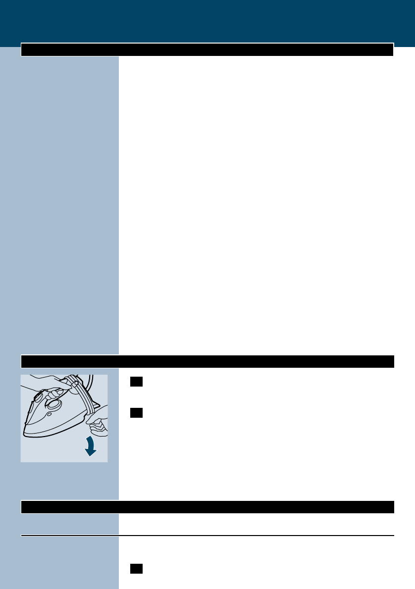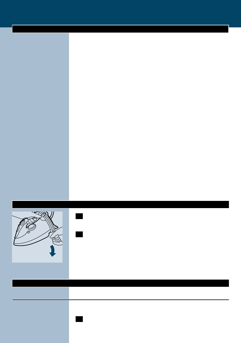 the iron on its heel and remove the mains plug from the wall