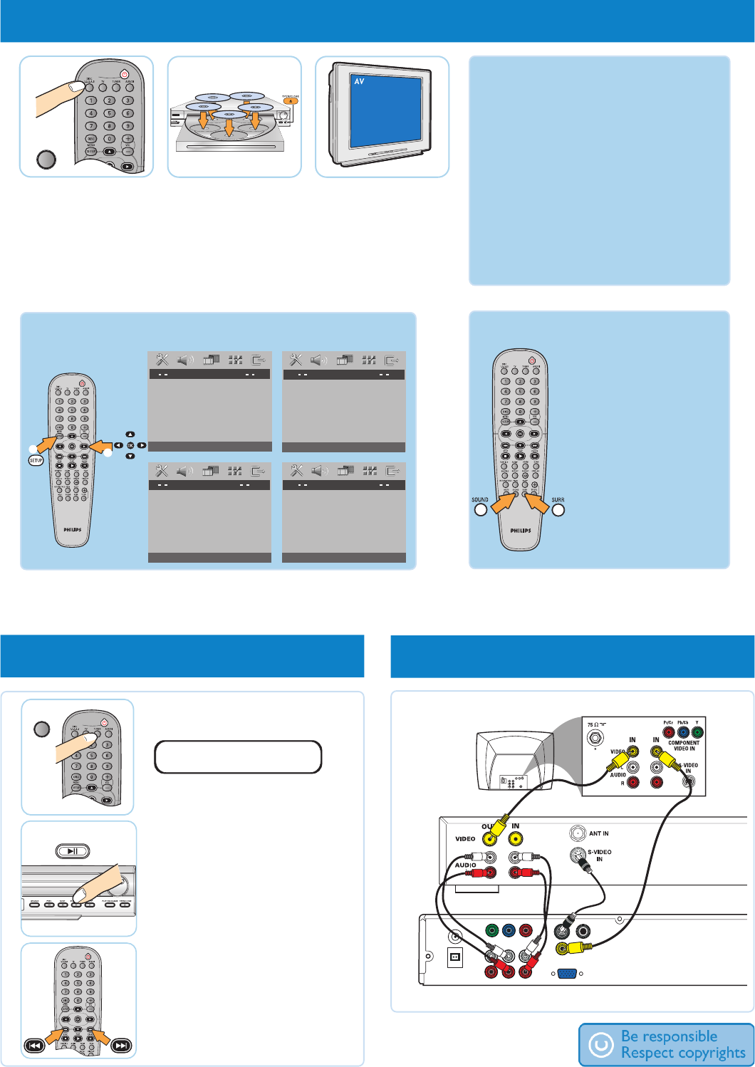 Refer to chapters “Getting Started” and “DVD Setup Menu