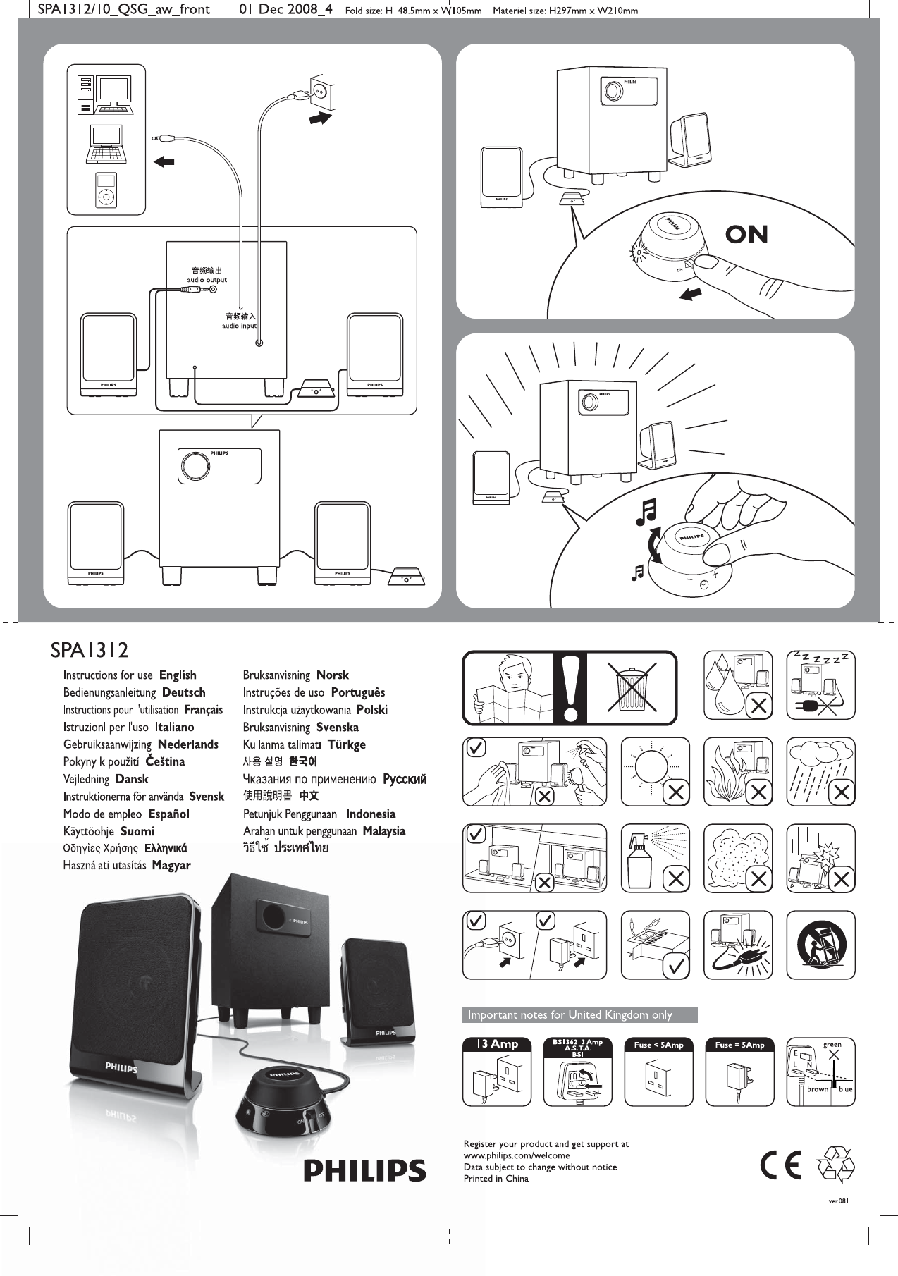 SPA1312/10_QSG_aw_back 01 Dec 2008_4 Fold size: H148.5mm x W105mm Materiel size: H297mm x W210mm