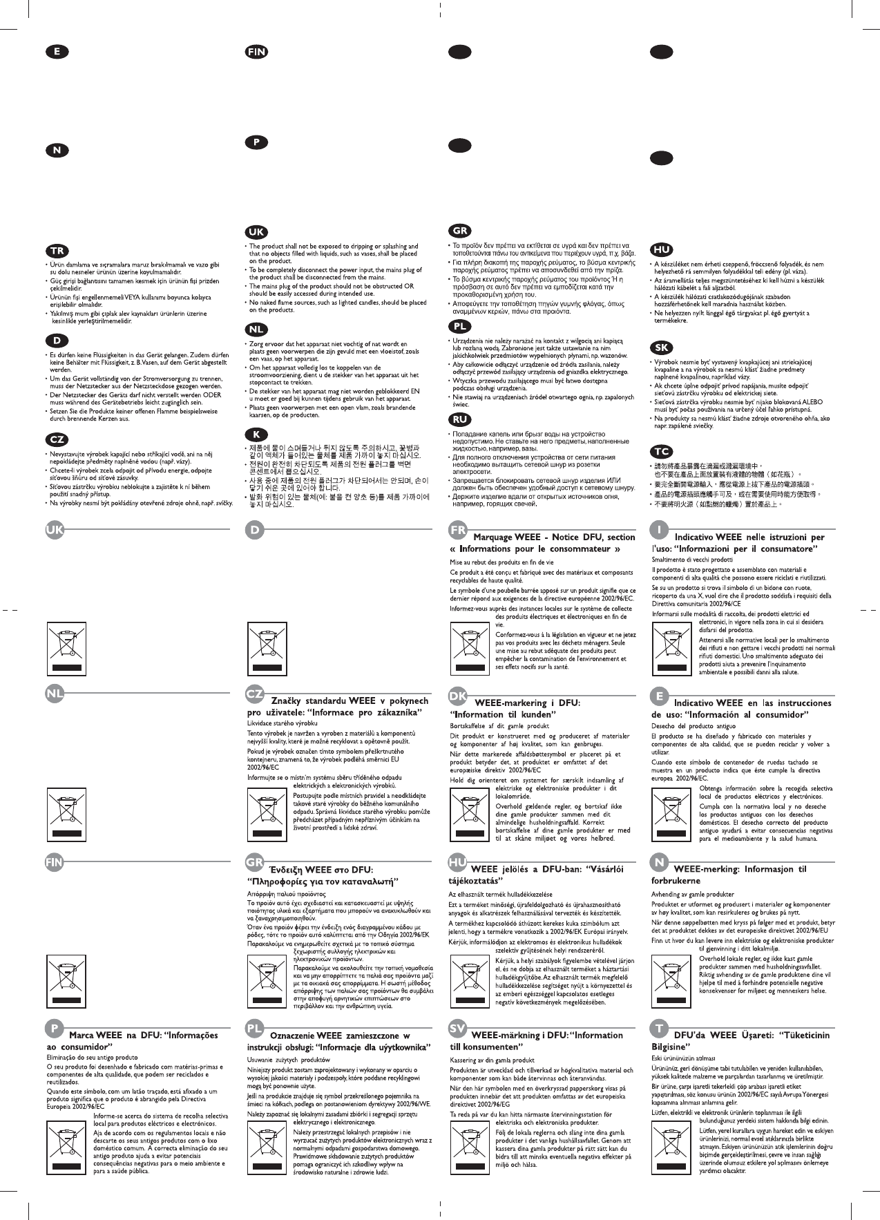 • Laitteen päälle ei saa roiskua vettä tai muita nesteitä, eikä laitteen