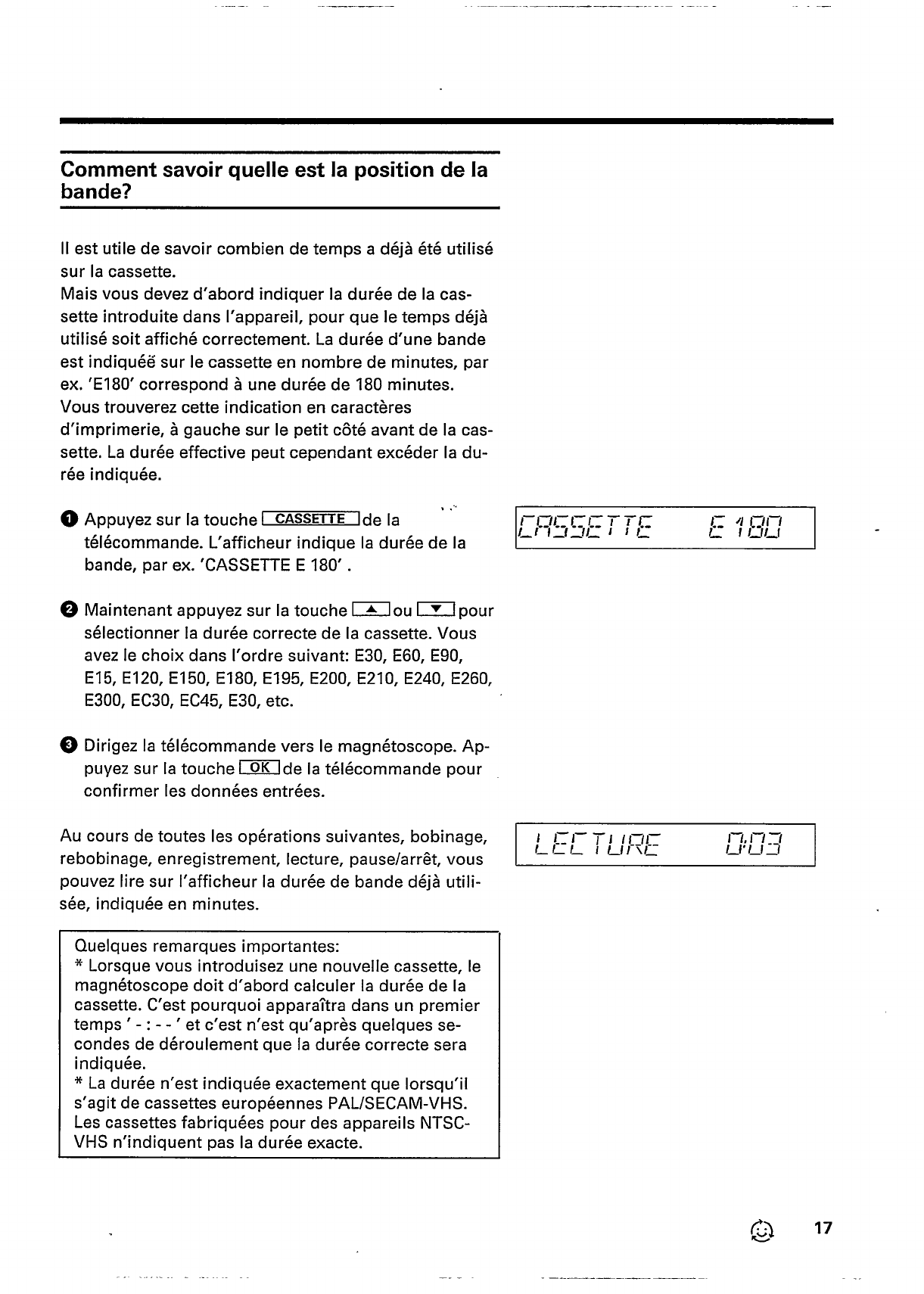 - 4. LECTURE D'UNE CASSETTE ENREGISTREE