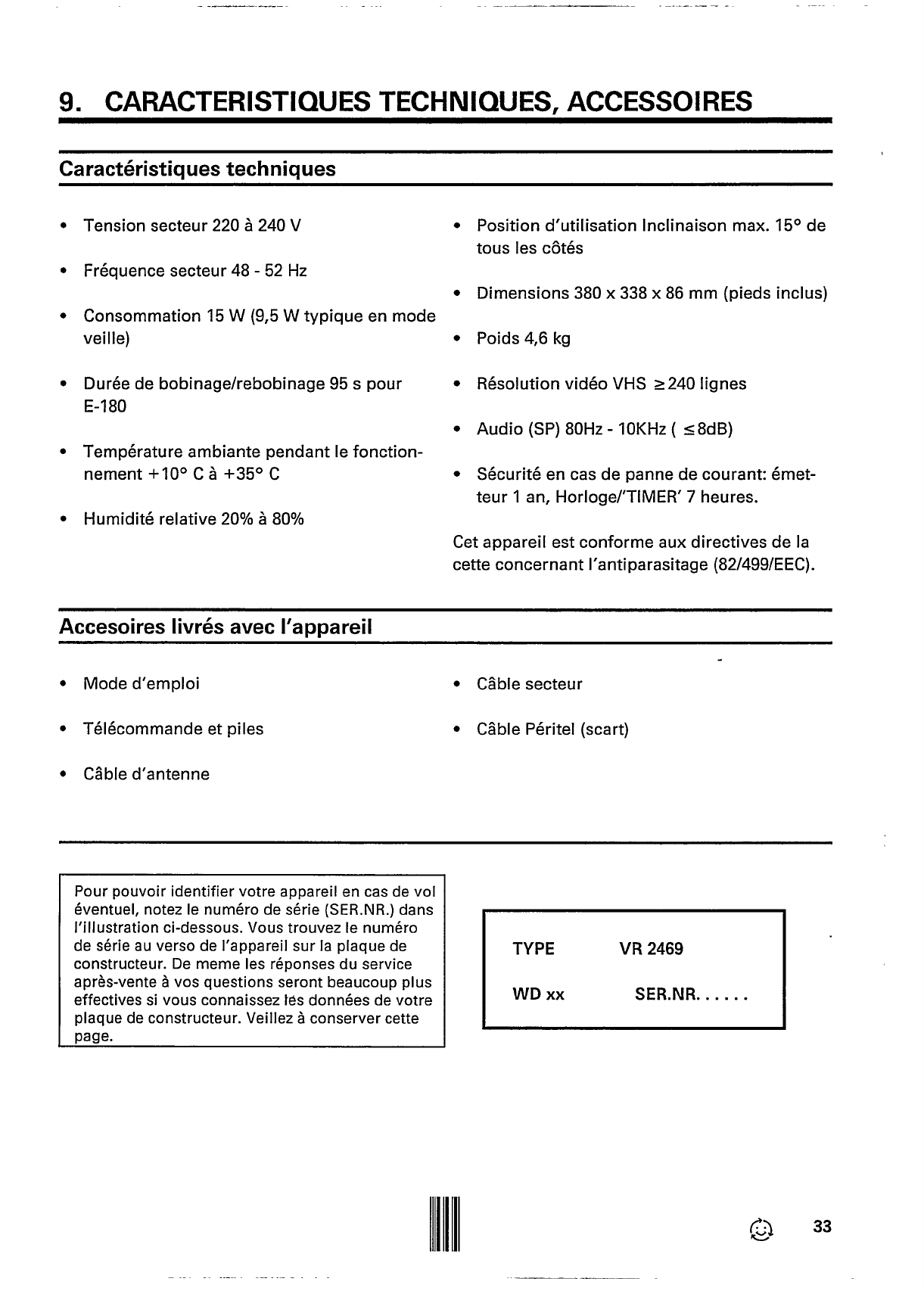 - 9. CARACTERISTIQUES TECHNIQUES, ACCESSOIRES