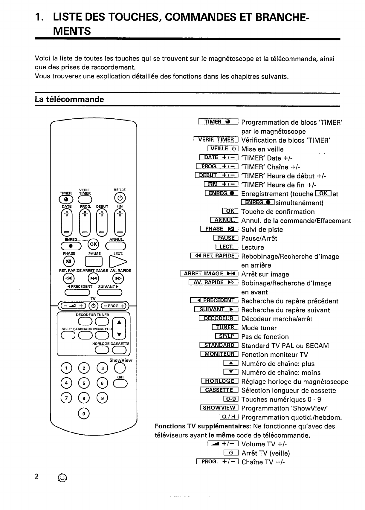- 1. LISTE DES TOUCHES, COMMANDES ET BRANCHEMENTS