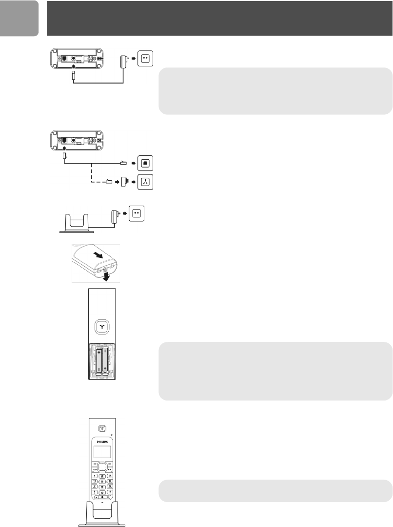 > Zerlegen Sie weder das Mobilteil noch die Basisstation. Sie könnten mit gefährlichen Spannungen in