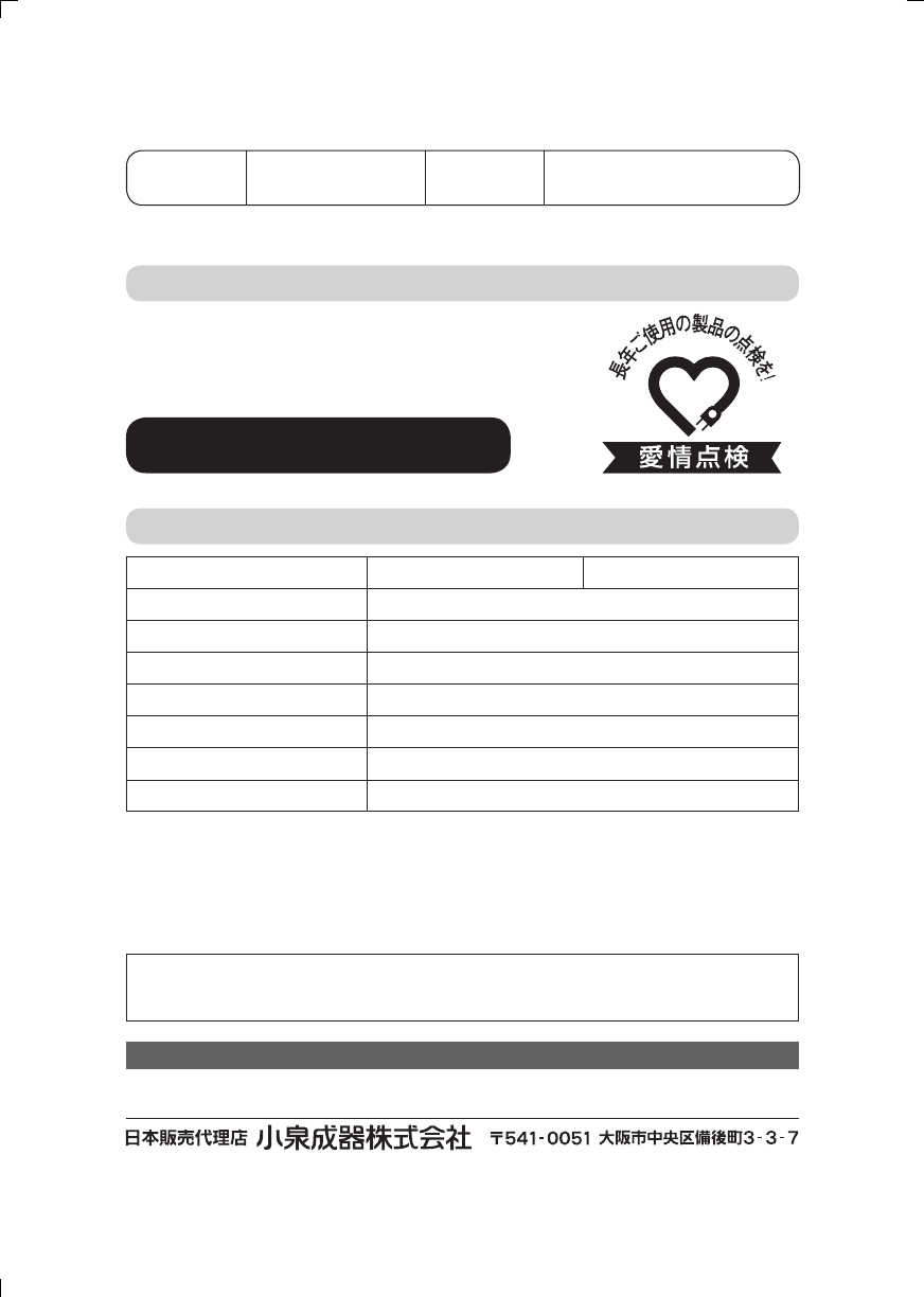 ご販売店様へ この保証書はお客様へのアフターサービスの実施と責任を明確にするものです。