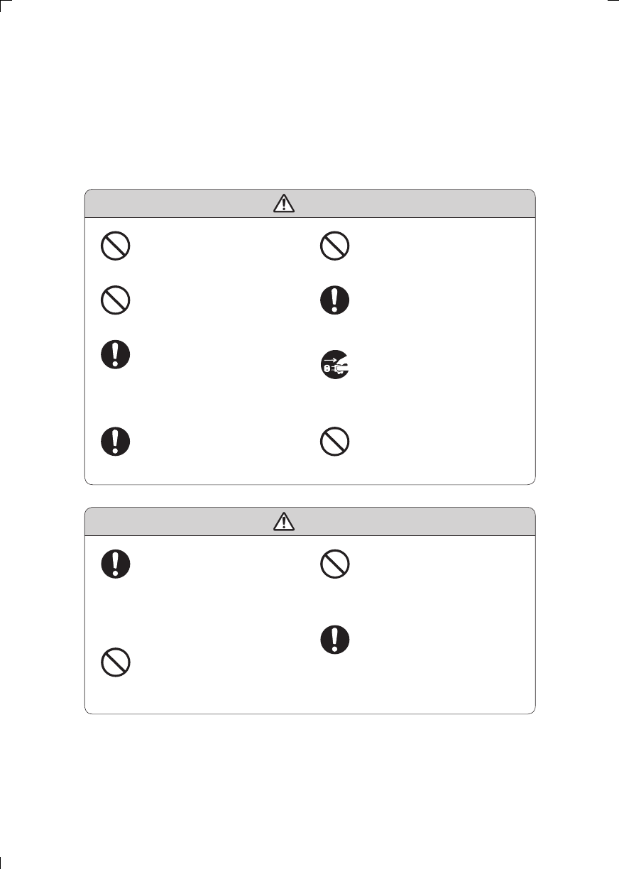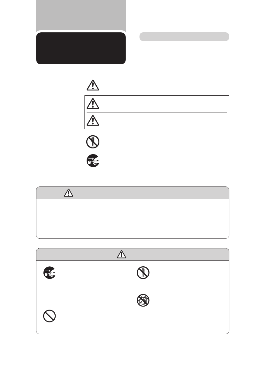 警告 人が死亡または重傷を負う可能性が想定される内容。