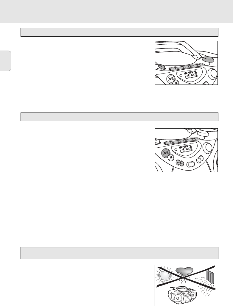 ensoleillement direct). Fermez toujours la trappe du CD pour éviter que de la poussière nese dépose