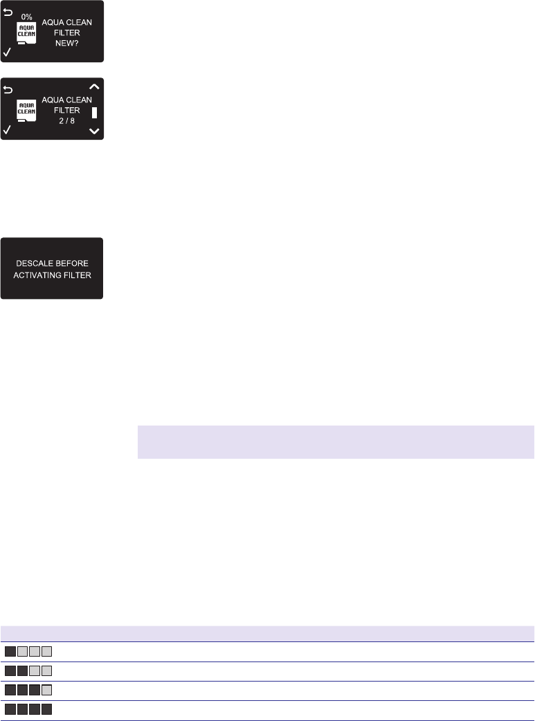 “AquaClean” vandens ltrą naudodami meniu
