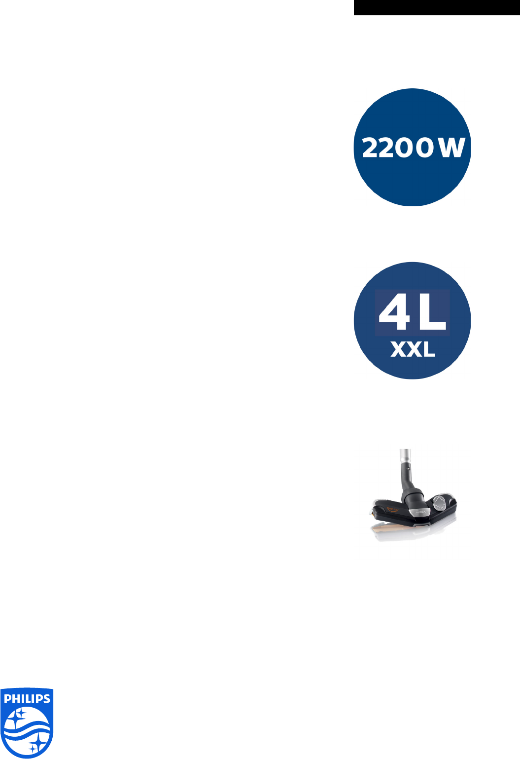 • Maximum 500 W szívóerővel biztosító 2200 W-os motor