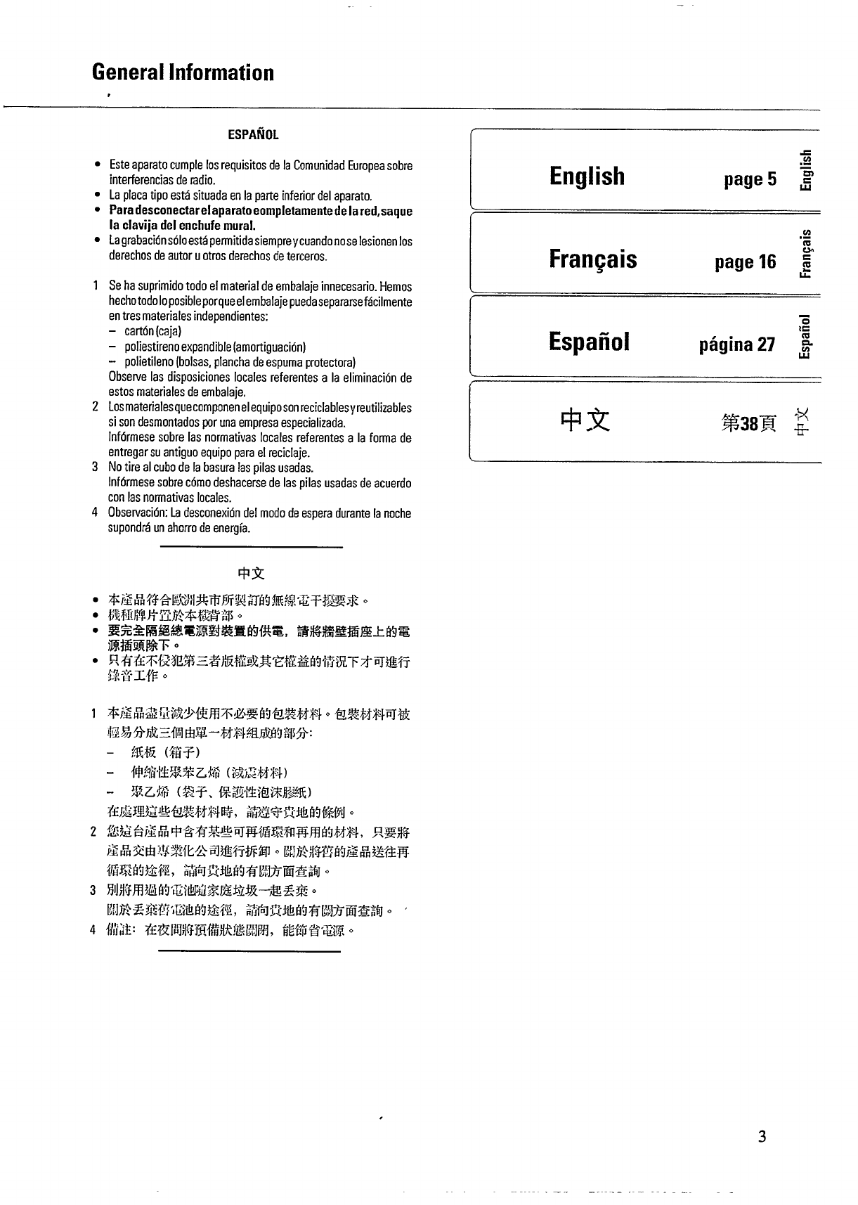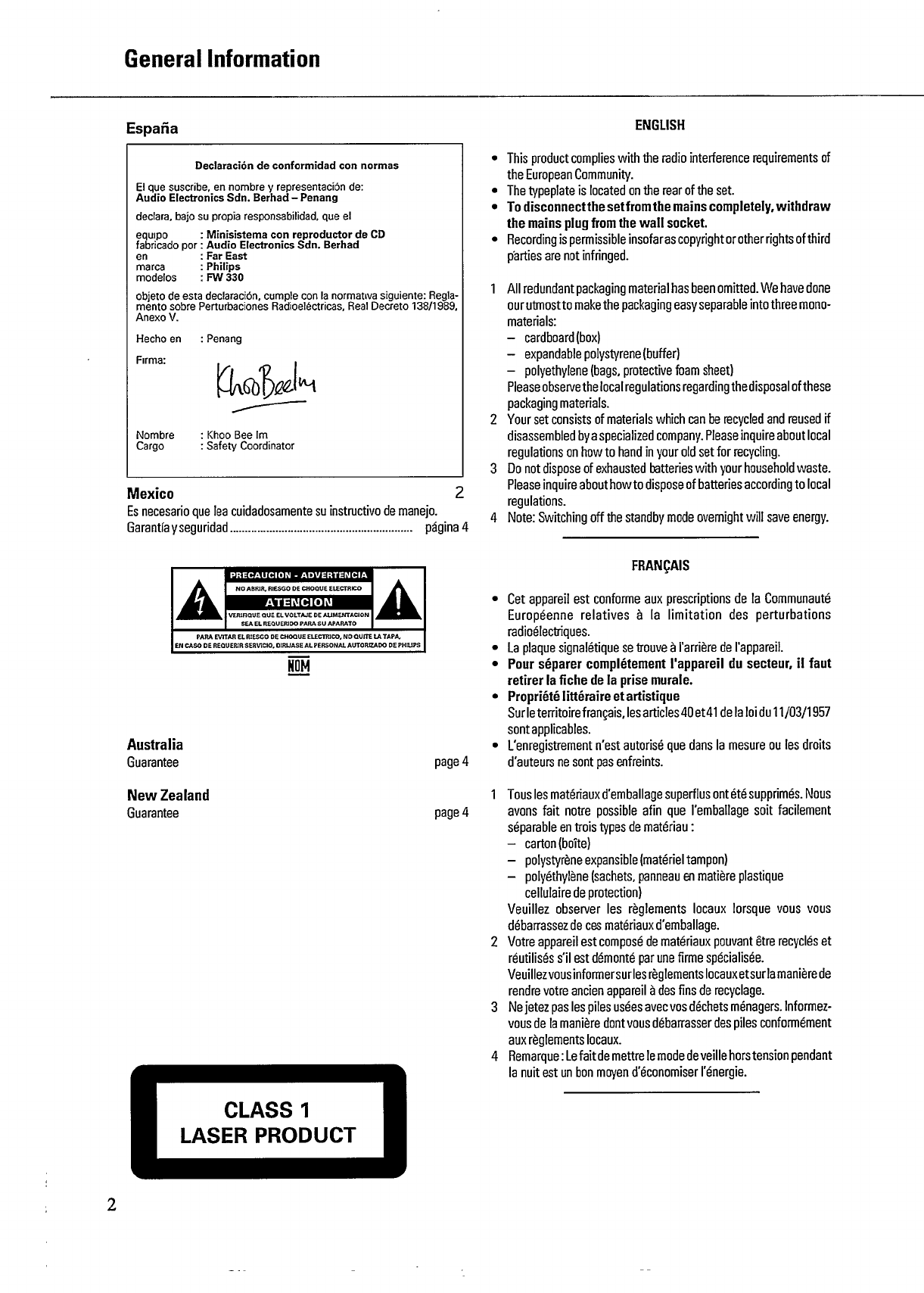 FW330/20 fw330_20_dfu_fra Philips FW330/20 user manual - Spanish - Owner's manual