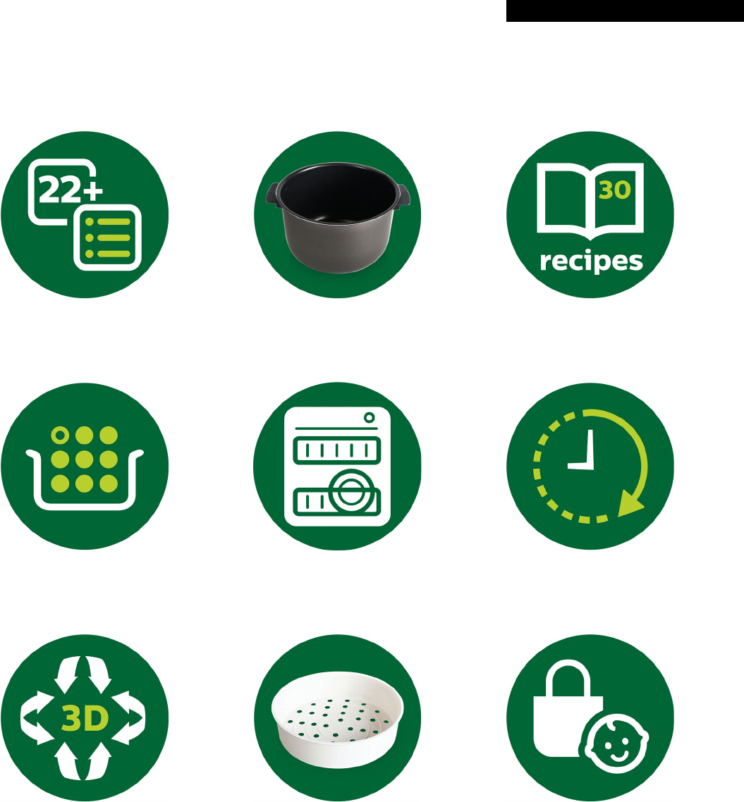 • 22+ iestatītas programmas nodrošina vieglu gatavošanu