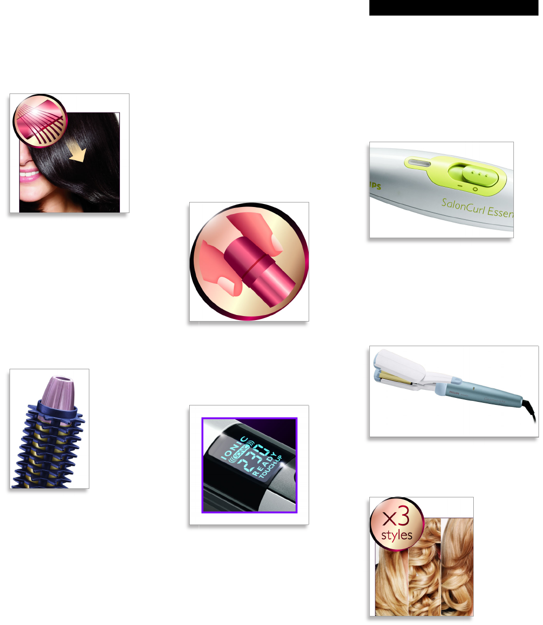• 3 styles: straight, big curls and waves