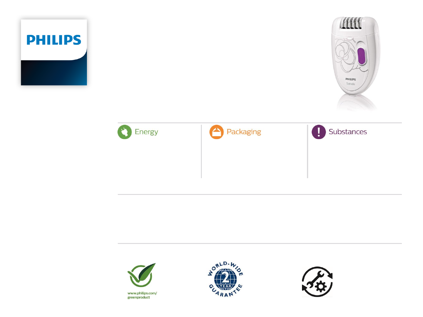 Philips Green Product 2 years world-wide warranty For service, spare and