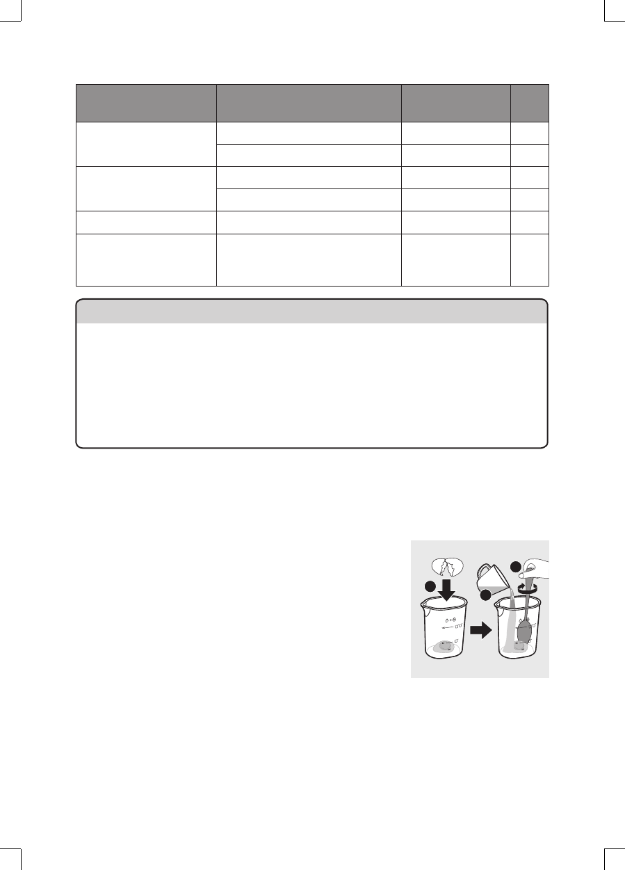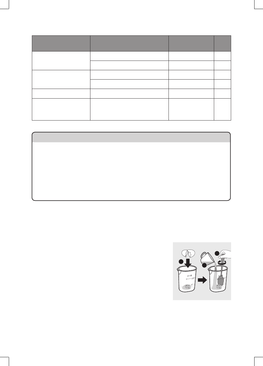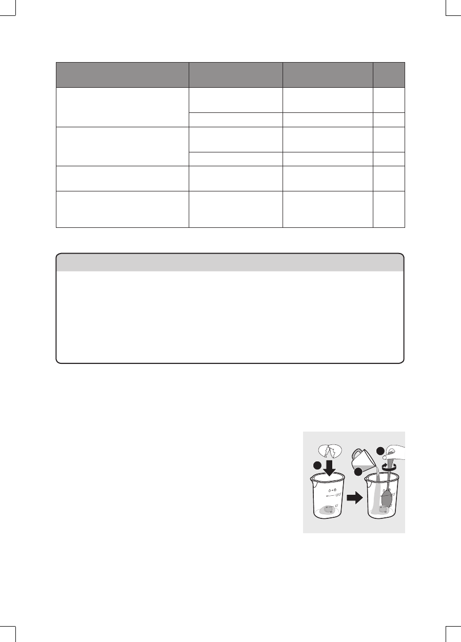 «Tableau des proportions farine/eau». Utilisez une balance de cuisine pour mesurer la quantité