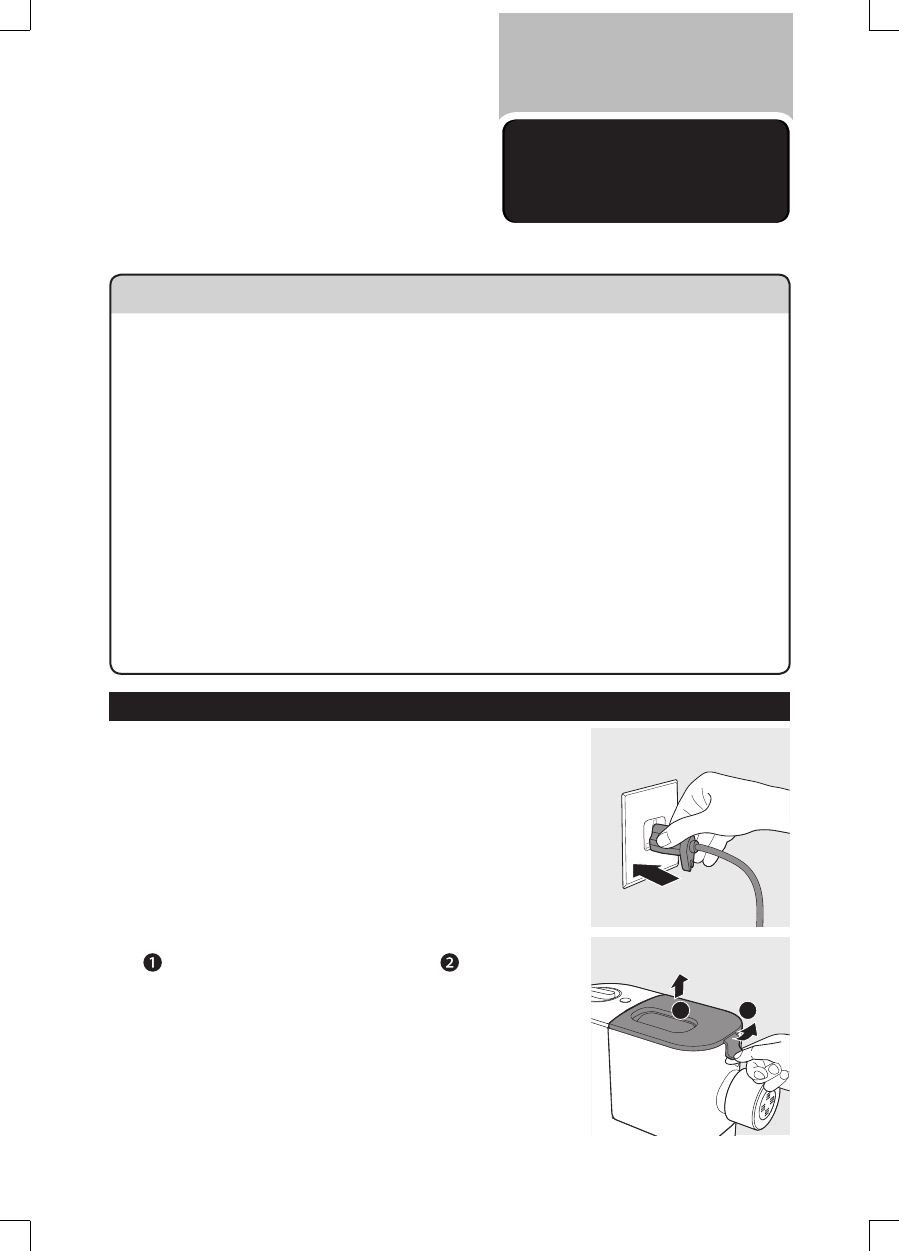 3 To protect against risk of electrical shock, do not immerse main unit,