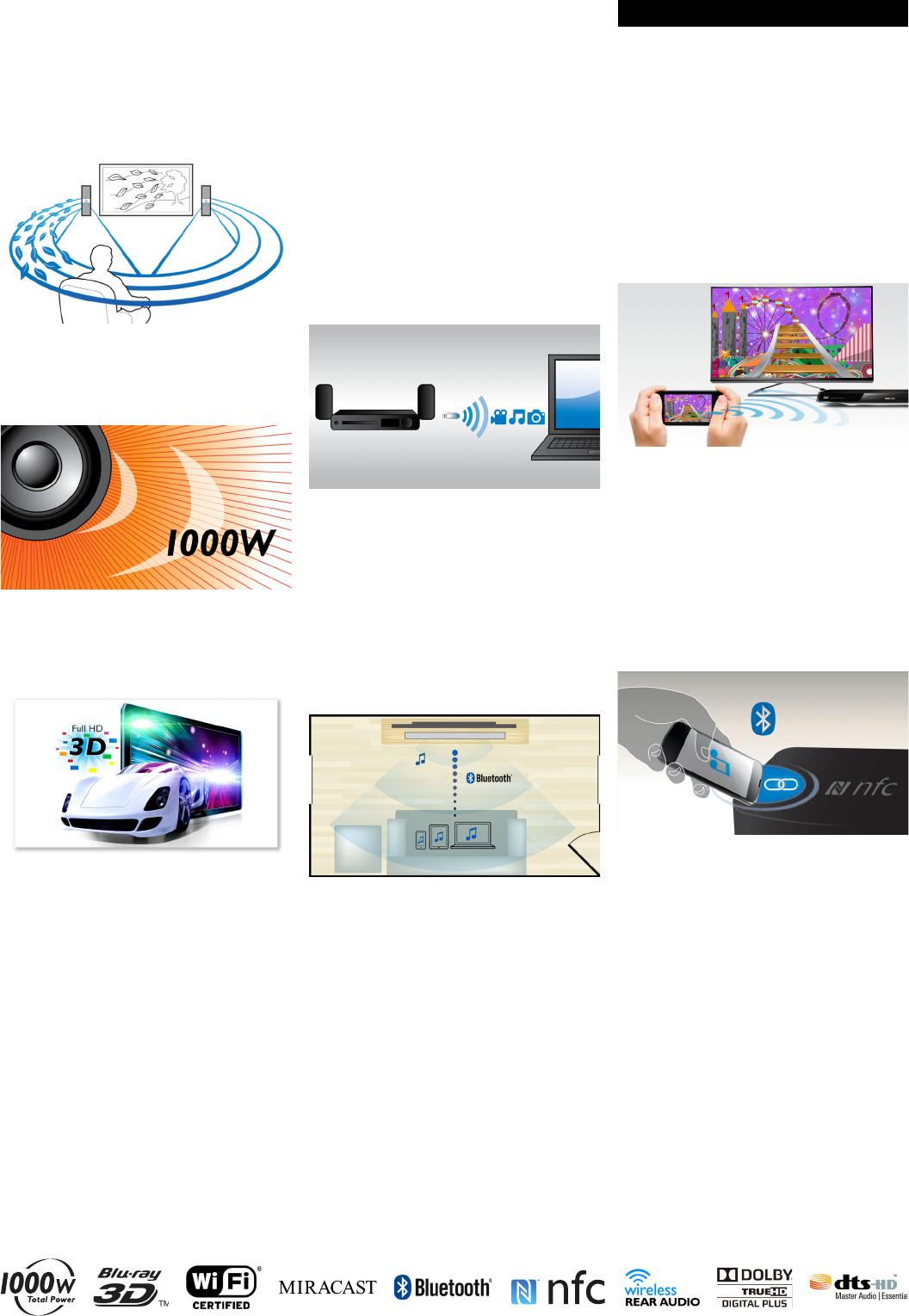 • 1000 W RMS teljesítmény a kiváló hangzású filmekhez és zenéhez