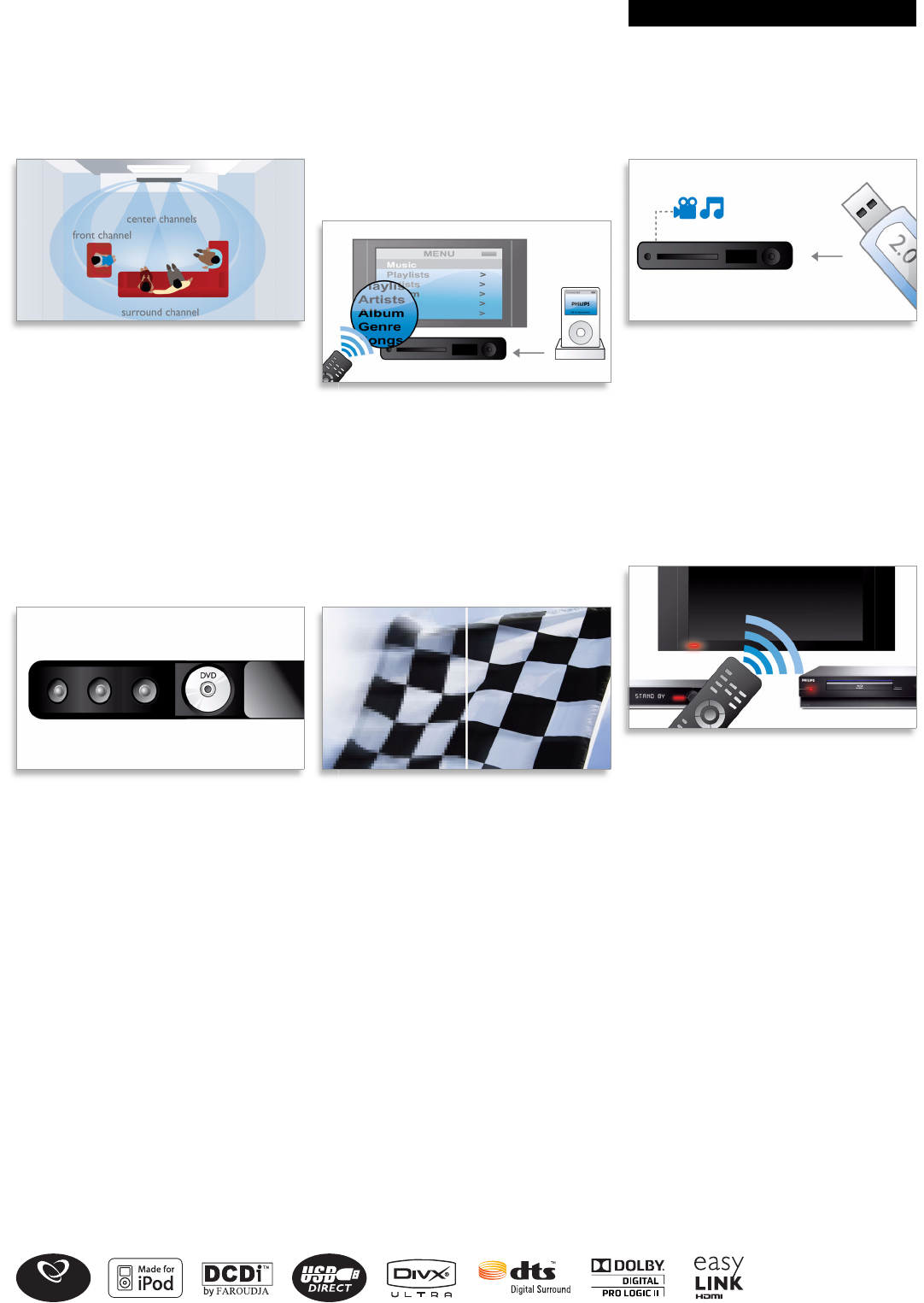 • Hi-Speed USB 2.0 Link plays video/music from USB flash drives
