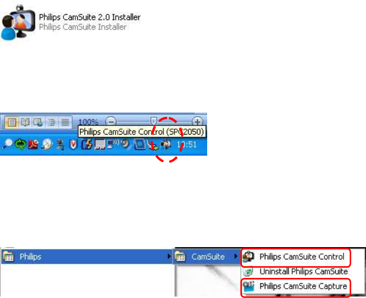 Step 2: In the Program files, go to Philips > CamSuite to see the Philips CamSuite Control and Capture