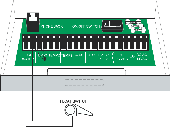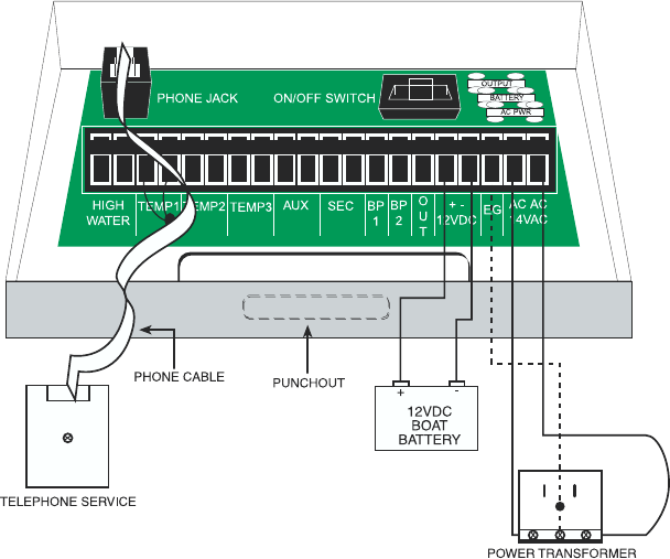 knockout on the bottom end of the enclosure. Terminal strips for