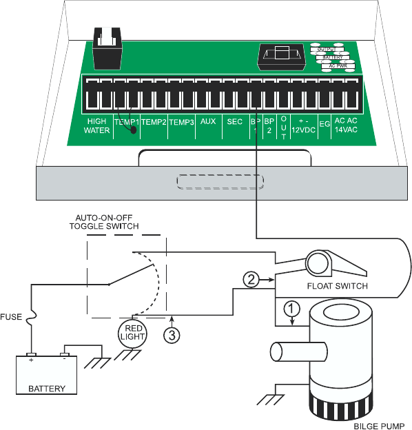 The system shall also connect to the 12VDC boat battery system for