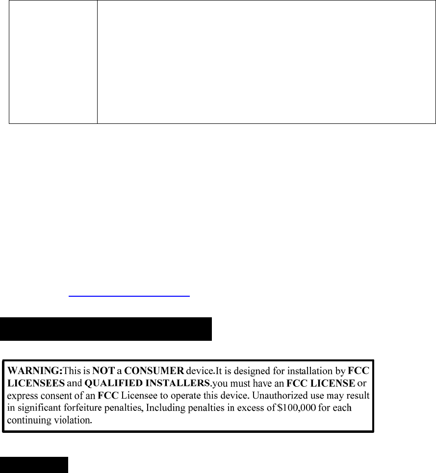 Warning:Unauthorized antennas,cables and/or coupling devices are prohibited by